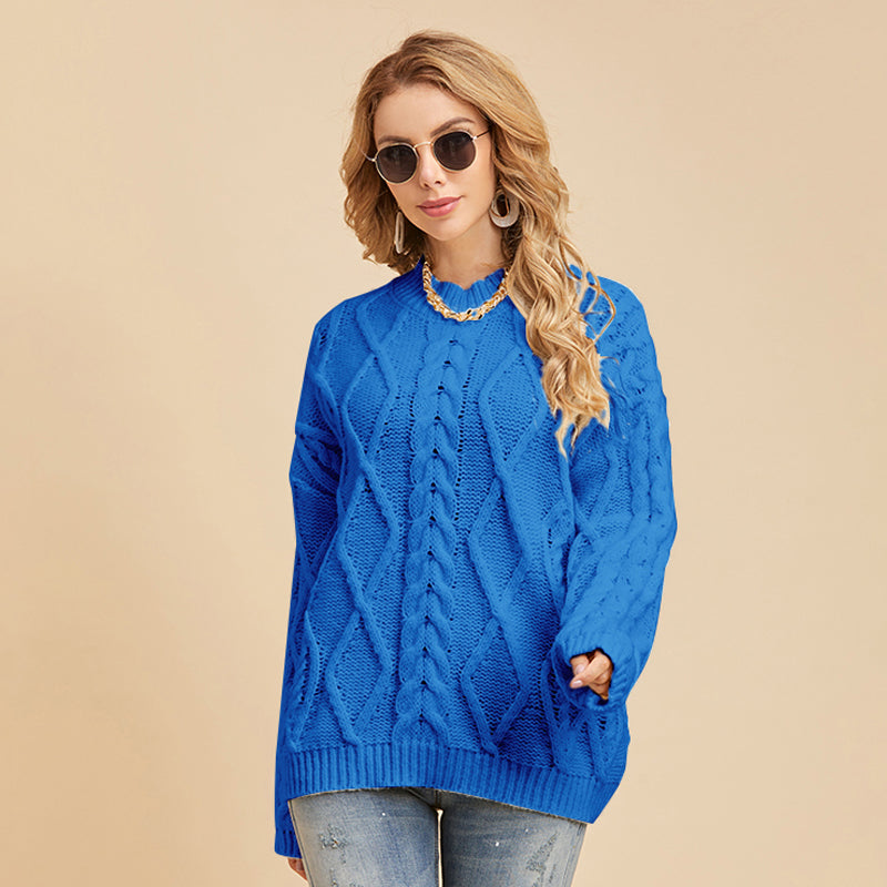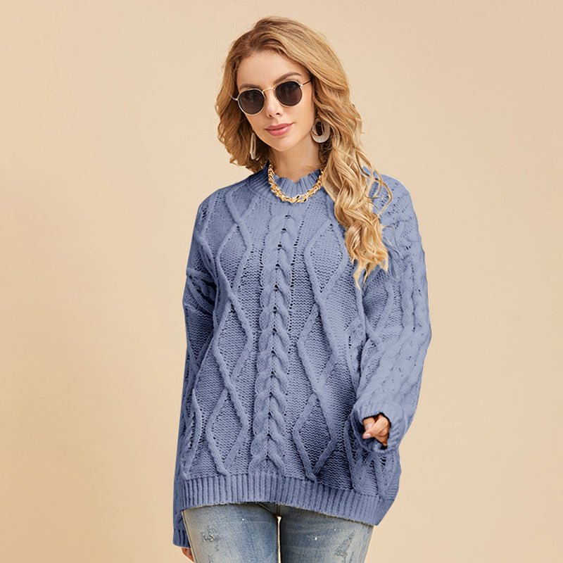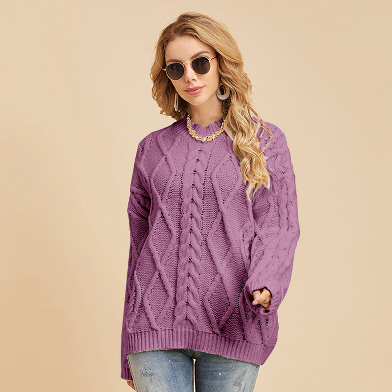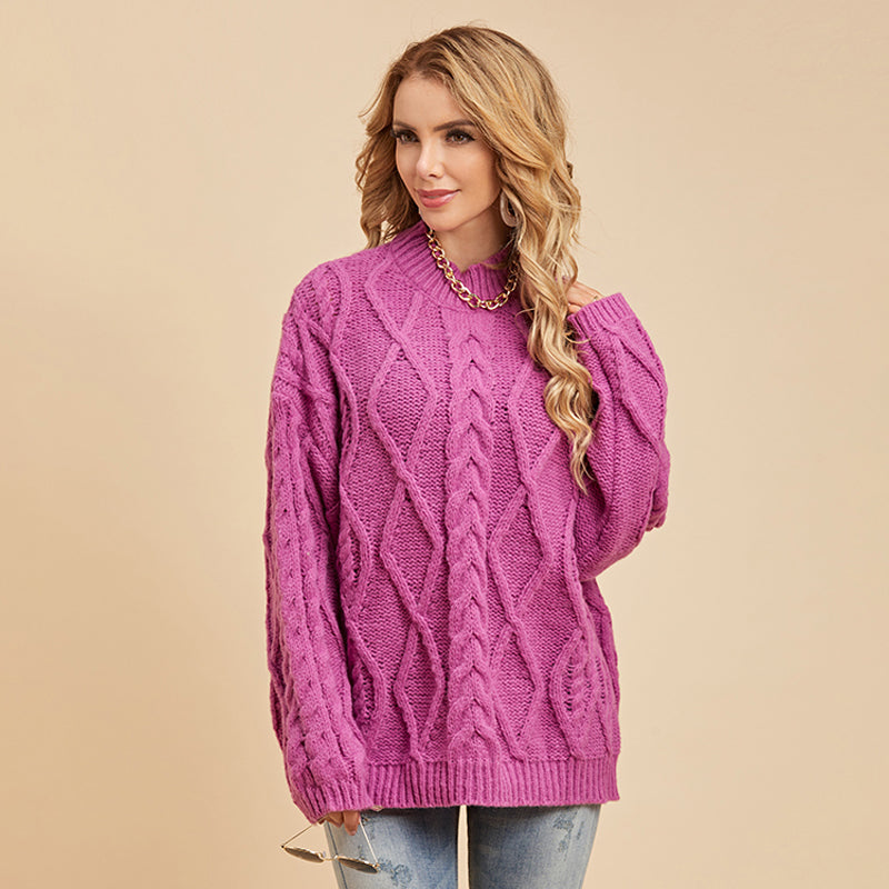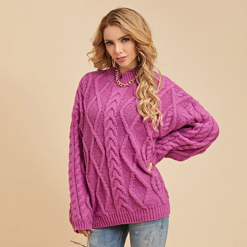 Damen Pullover mit überschnittenen Schultern, langen Ärmeln und Zopfmuster, lockerer Pullover mit halbem Stehkragen