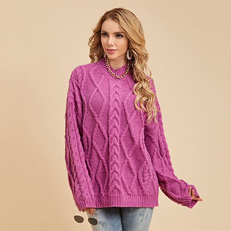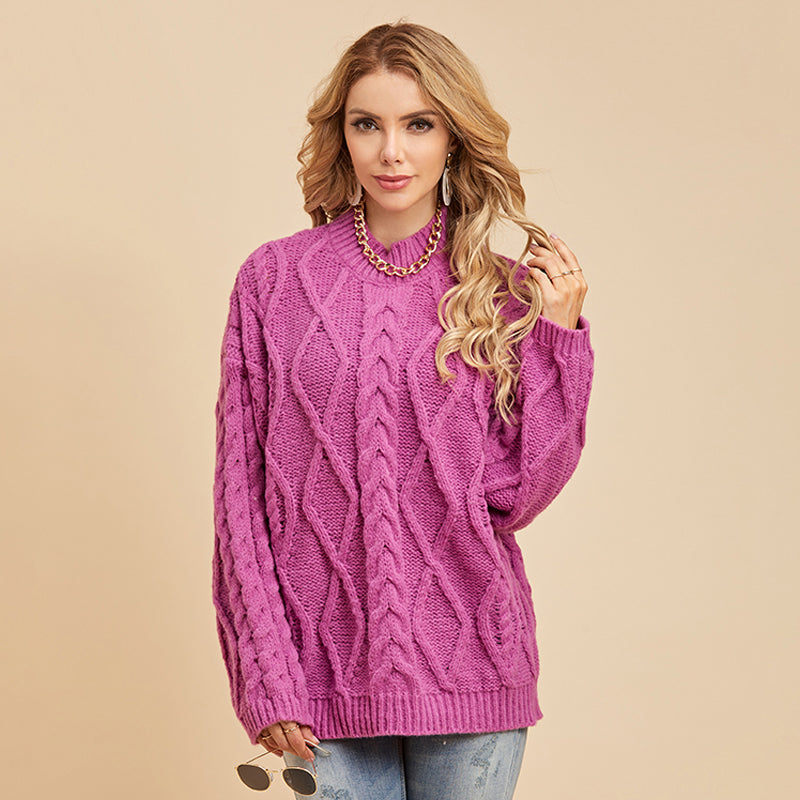 Women's Drop Shoulder Long-sleeved Cable Knit Sweater Loose Half High Neck Pullover Sweater Sai Feel
