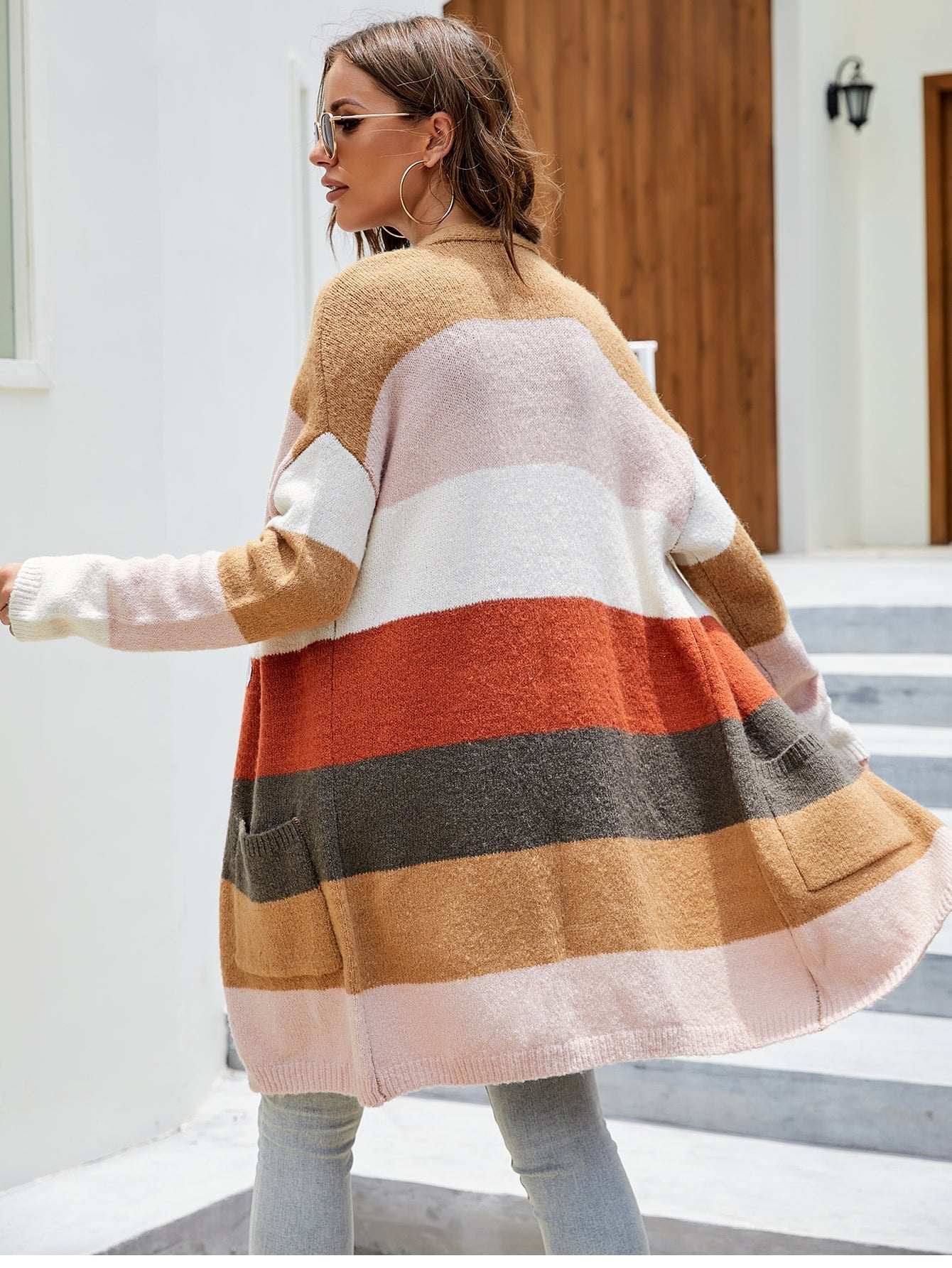 New contrast color long sleeves striped knitting cardigan Sai Feel