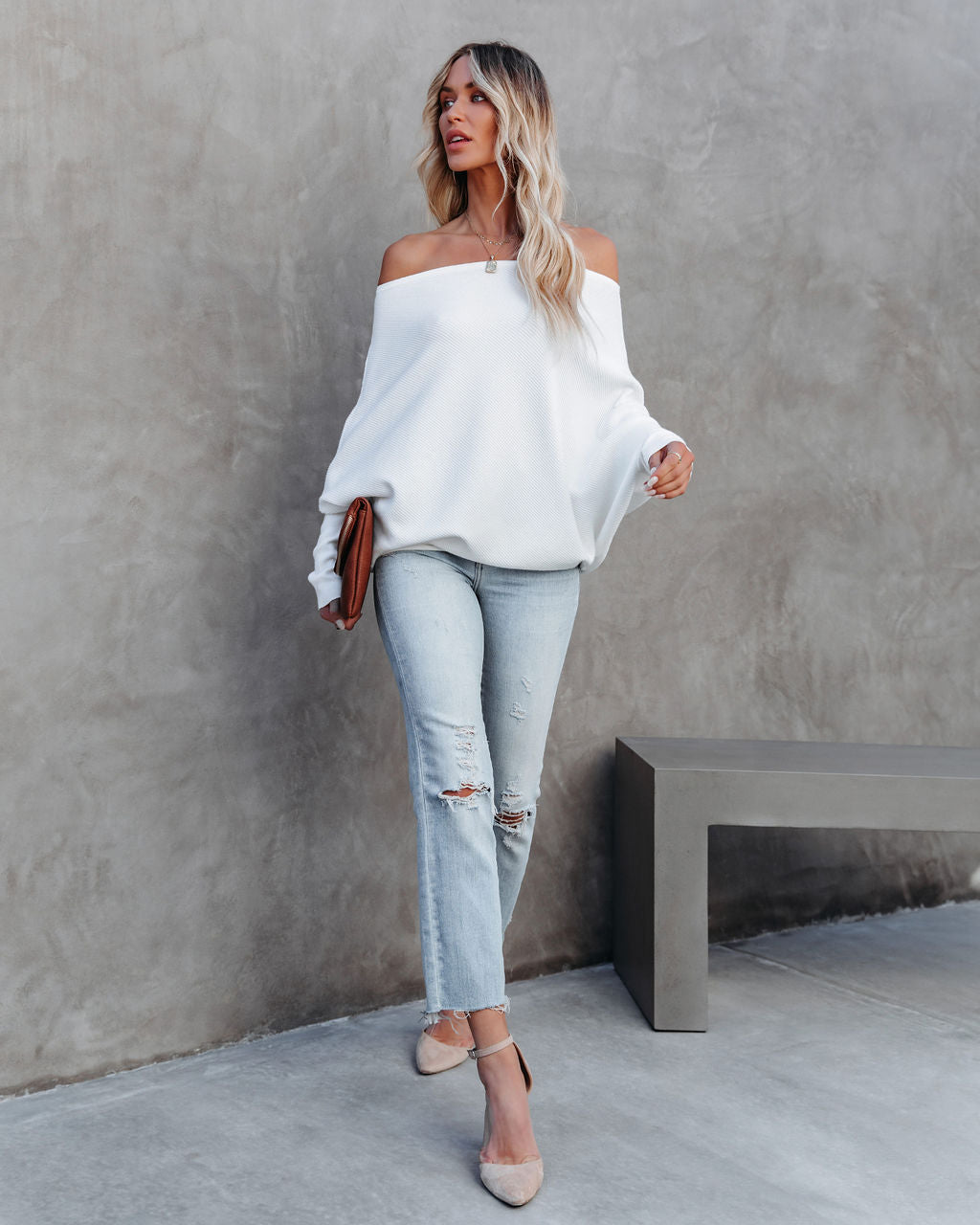 InsStreet-Bestseller: Unser All That Ribbed Cashmere Blend Sweater in Elfenbein ist alles und noch mehr! Diese Kaschmirmischung ist weicher als je zuvor und für die perfekte Dehnbarkeit gerippt. Der weite Ausschnitt dieses Pullovers im Dolman-Stil ermöglicht es Ihnen, ihn über einer oder beiden Schultern zu tragen, wenn Sie Ihrem Look ein wenig Charme verleihen möchten! Bleiben Sie mit der Asymmetrie dieses Pullovers im Trend! Kombiniert mit den Perfect Creolen. Chloe Mini-Halskette. Halskette mit Initialenkarte. Schlichter Armreif. Stella Crossbody Envelope Zip Clutch. Mcguire High Rise Distressed Denim. und Ritz Faux Suede Pointed Heel.