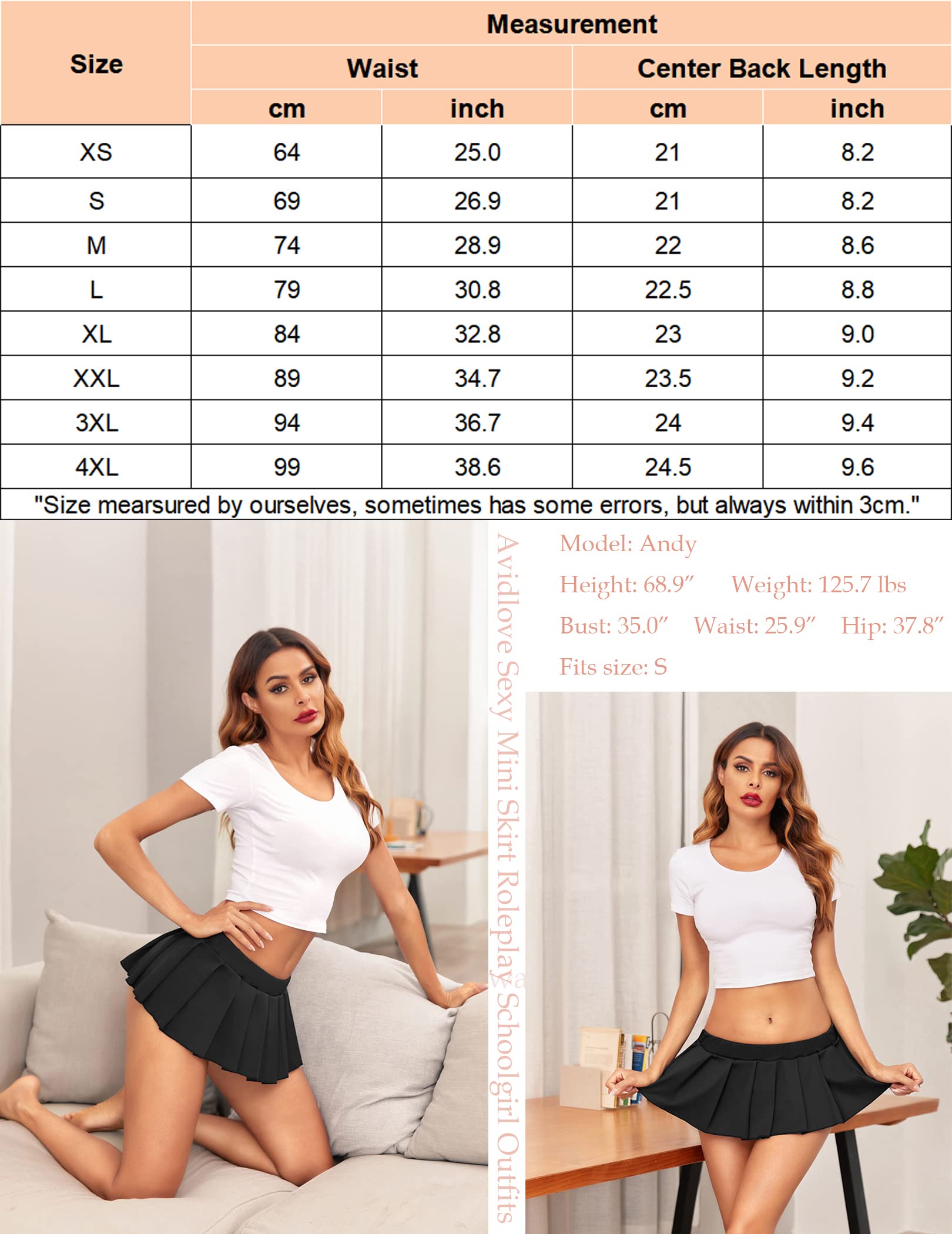 Kroyy Dessous, plissierter Minirock, Rollenspiel-Dessous. Hergestellt aus 95 % Nylon und 5 % Elastan. Sexy Schulmädchen-Cosplay-Studentenuniform-Kostüme. Angenehm zu tragen. Handwäsche und Maschinenwäsche.