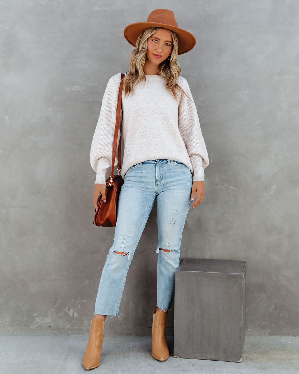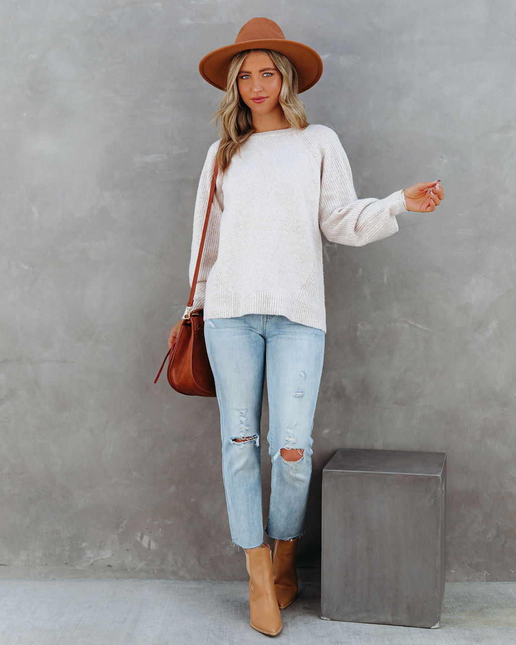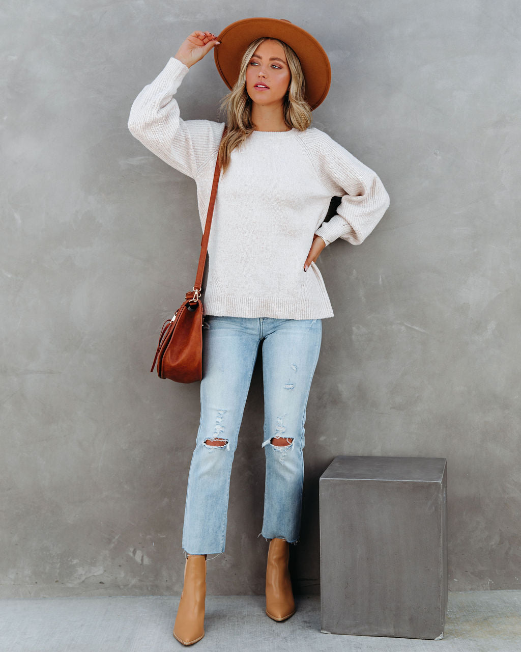 Unser Ayaan Strickpullover wird Sie den ganzen Herbst und Winter über begleiten! Dieser klassische Pullover in Haferflocken-Optik besticht durch bauschige Ärmel. Er hat einen Rundhalsausschnitt und lange Ärmel. Der dicke Strick hält Sie die ganze Saison über warm! Kombinieren Sie ihn mit den Perfect Creolen, der Chloe Mini-Halskette, der Compass Coin-Halskette, dem schlichten Armreif, der Highland Bag, der McGuire High Rise Distressed Denim und den Carmel Kunstleder-Stiefeletten mit Absatz.