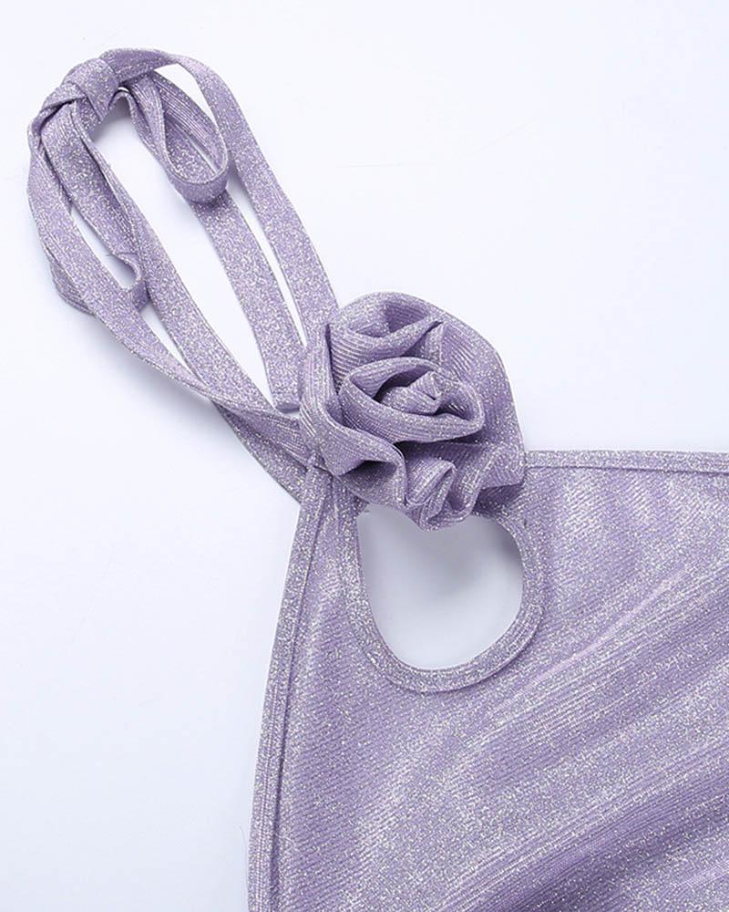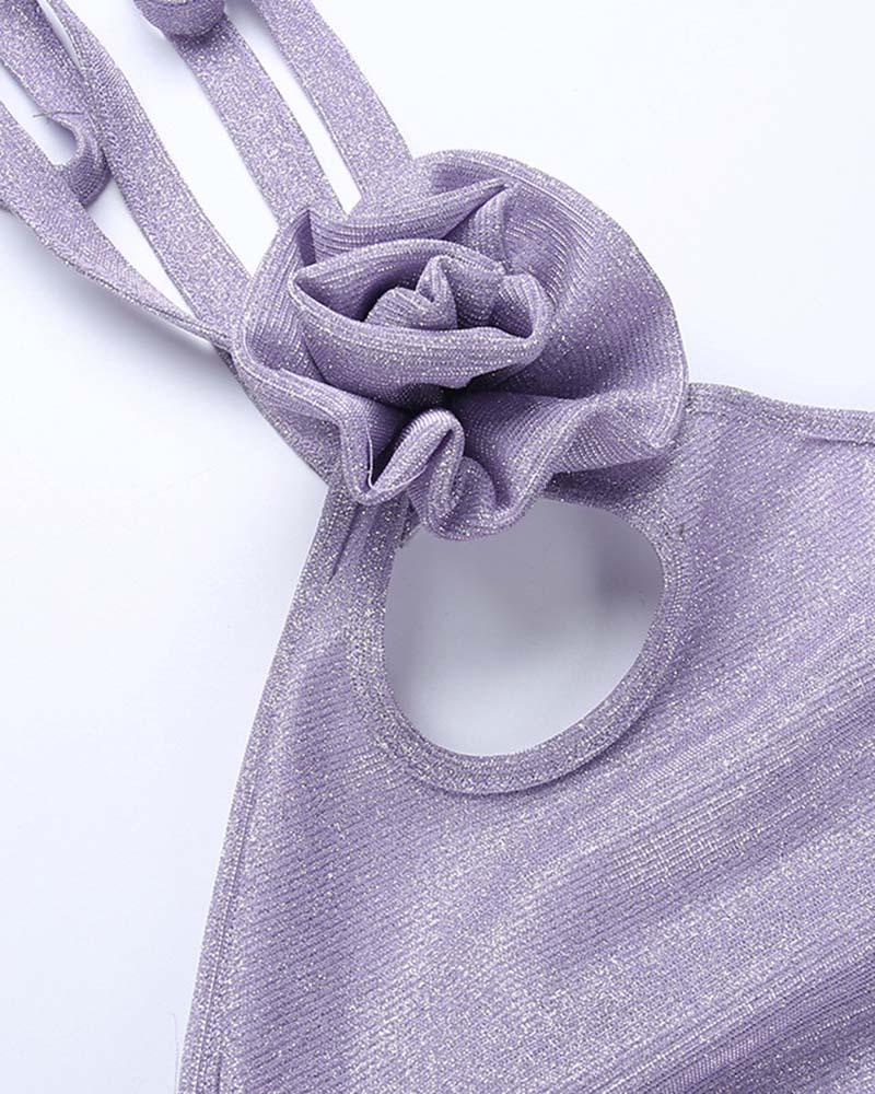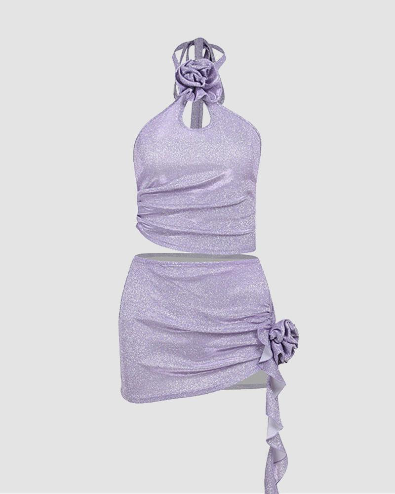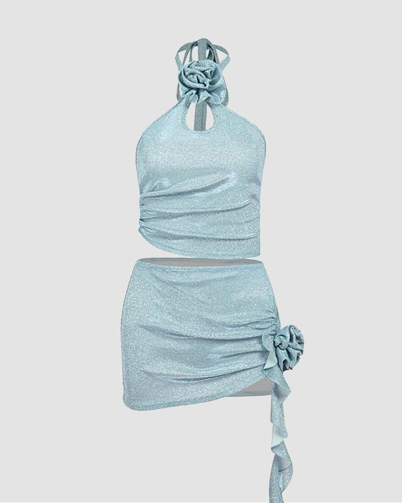 Details : Kombiniertes Set bestehend aus Neckholder-Oberteil und kurzem Rock mit Blumenmuster