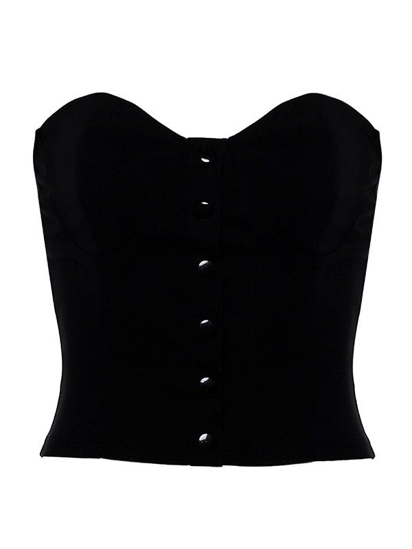 Beschreibung: Dieses Korsett-Top ist perfekt für Date-Night-Outfits oder schicke Street-Looks. Im Bandeau-Stil geschnitten, mit hautenger Silhouette und Knopfverschluss vorne.