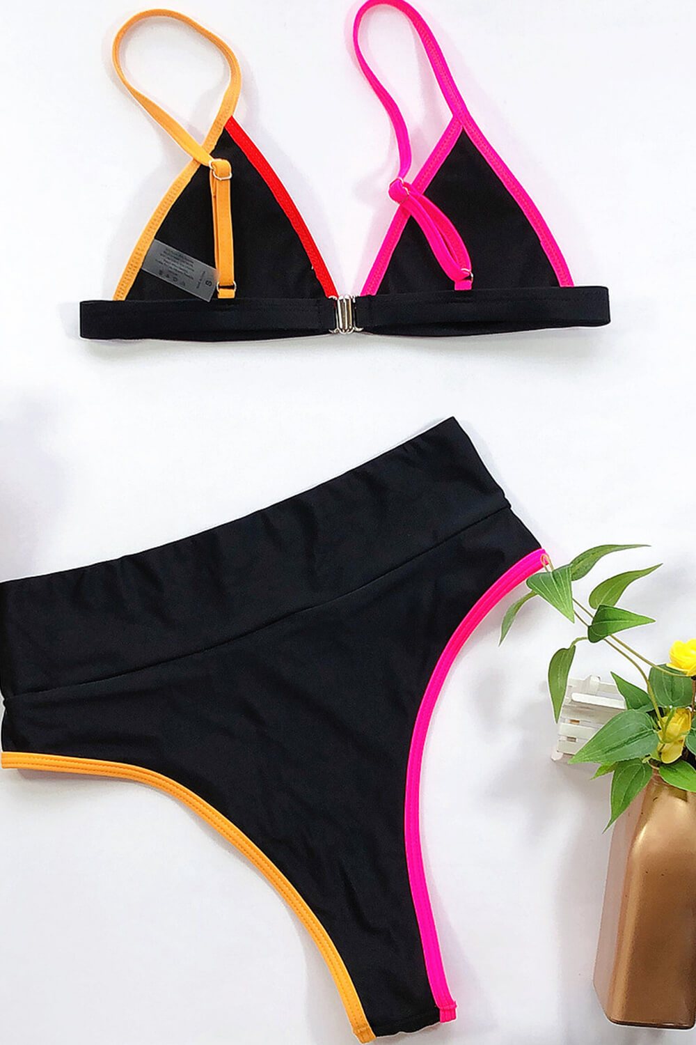 Schwarzes Bikinihöschen mit hoher Taille und Rippenmuster in Blockfarben