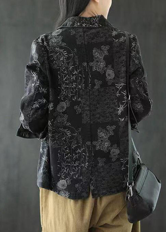 Schwarze gekerbte Patchwork-Knopf-Jeansmäntel für den Herbst Stoff: Baumwollmischung Größe & Passform: Passform: Dieses Kleidungsstück fällt der Größe entsprechend aus. Länge: Größe L misst 24,57" von der Schulter bis zum Saum Brustumfang: Ideal für jede Körbchengröße. Taille: Lockere Passform. Bequemer Platz in der gesamten Körpermitte. Hüfte: Lockere Passform – Platz für die Hüften. Kalte Handwäsche.