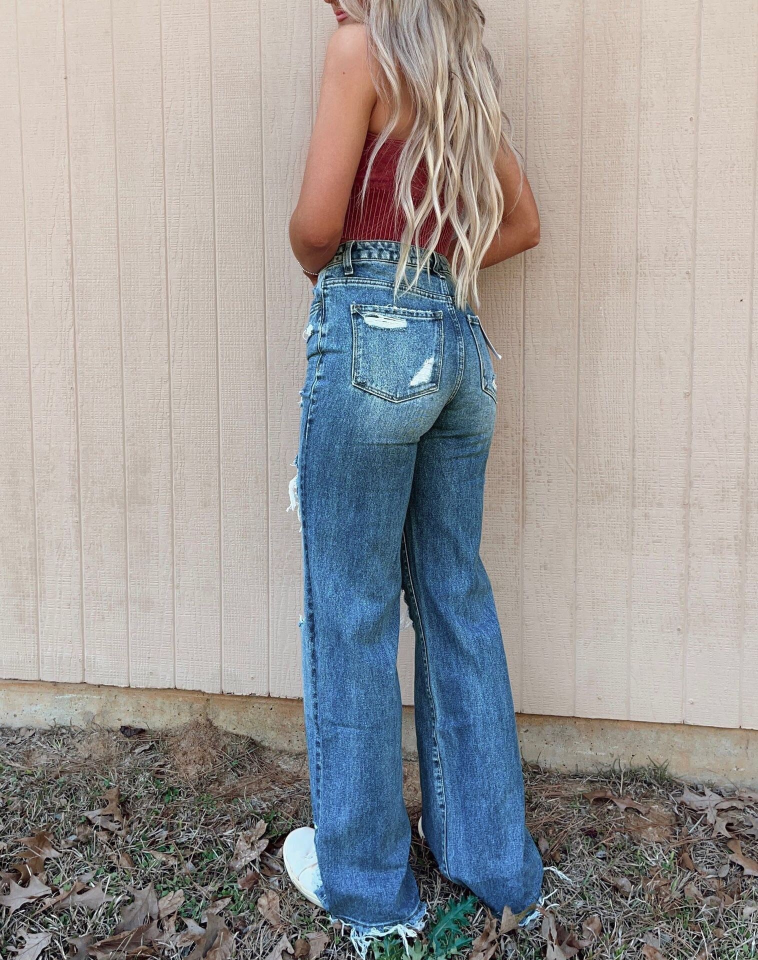 Das Used-Design macht die Bell-Jeans modischer und attraktiver