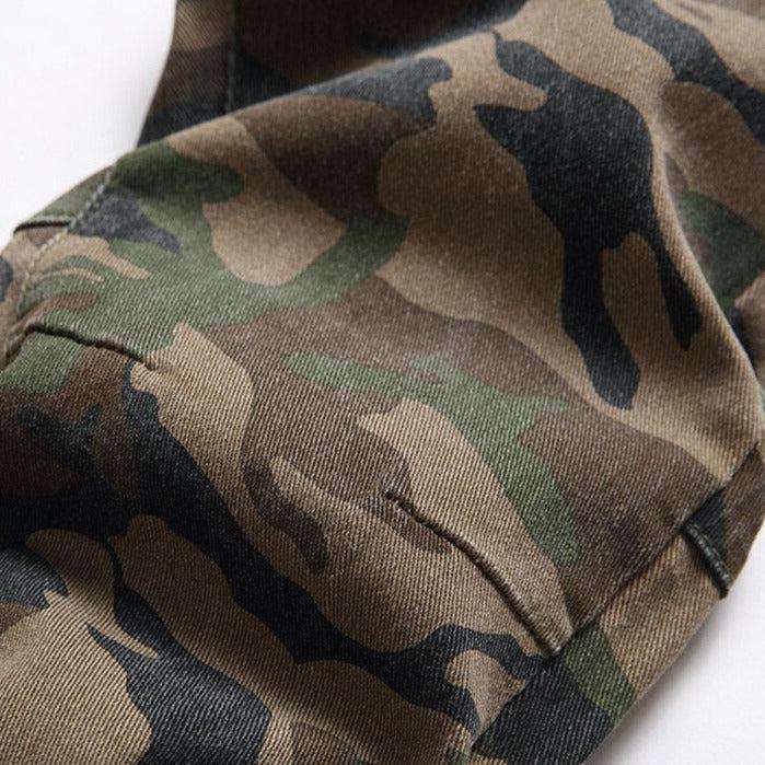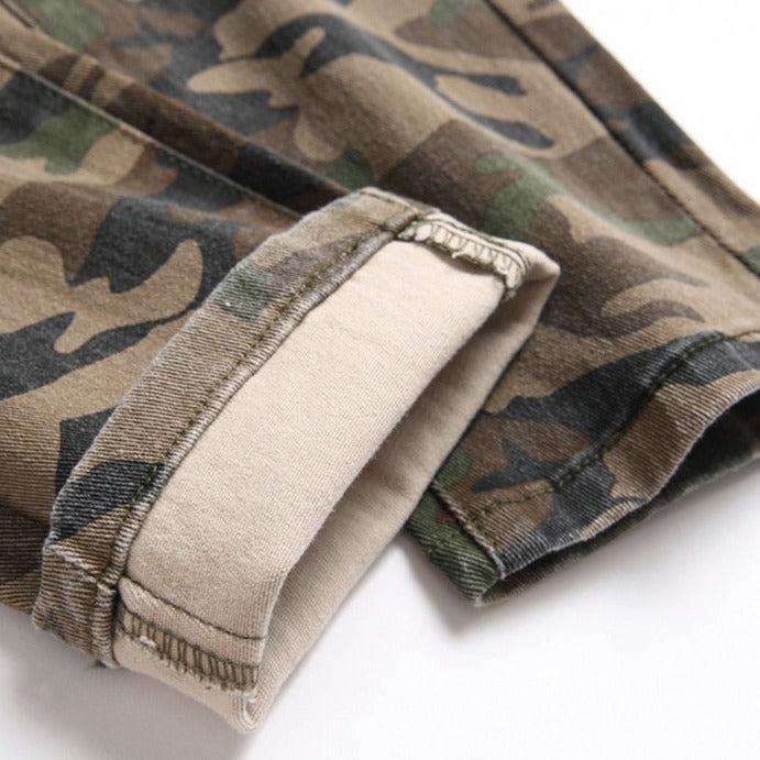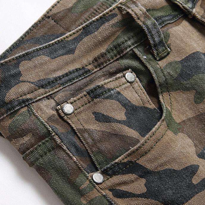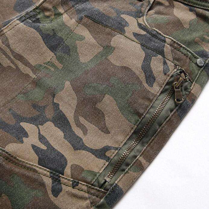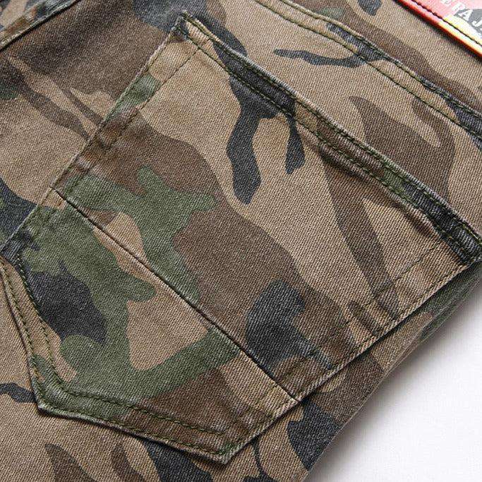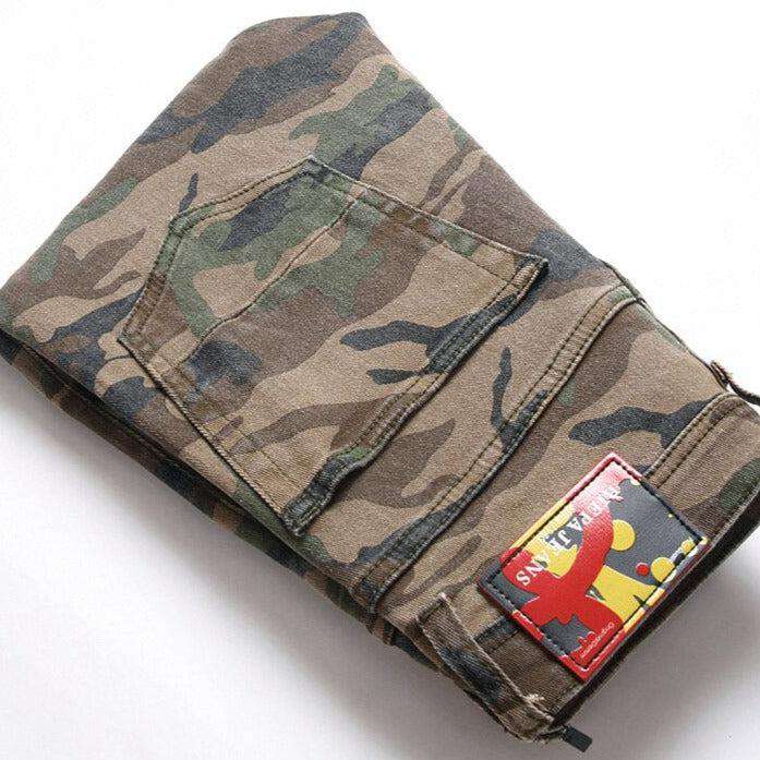 Entdecken Sie die perfekte Mischung aus Nostalgie und modernem Trend mit den Herren -Jeans mit Camouflage-Print aus der Frühjahr-Sommer-Kollektion 2023! Meisterhaft gefertigt im zeitlosen Y2K-Look. Diese schmal geschnittene Hose mit mittlerer Taille, Reißverschluss und Knopfverschluss ist der perfekte Begleiter für jeden Anlass.