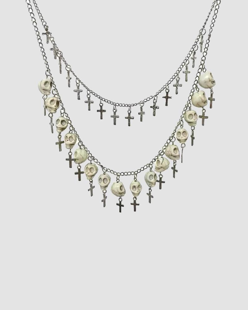 Detail: Doppelte Halskette mit Totenkopf- und Kreuzverzierungen