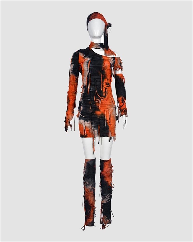 Details : Langes schulterfreies Kleid mit Handschuhdesign