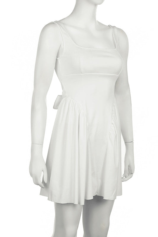 Unser Minirock „Florianne“ ist ein warmer Sommerlook mit auffälliger Silhouette. Das figurbetonte Oberteil ist aus pfirsichfarbener Baumwolle geschnitten und verfügt über unseren unglaublichen Miederrahmen, der sich dreht und einen supertiefen, offenen Rücken freigibt. Es ist mit einer übergroßen Schleife für femininen Glamour versehen.