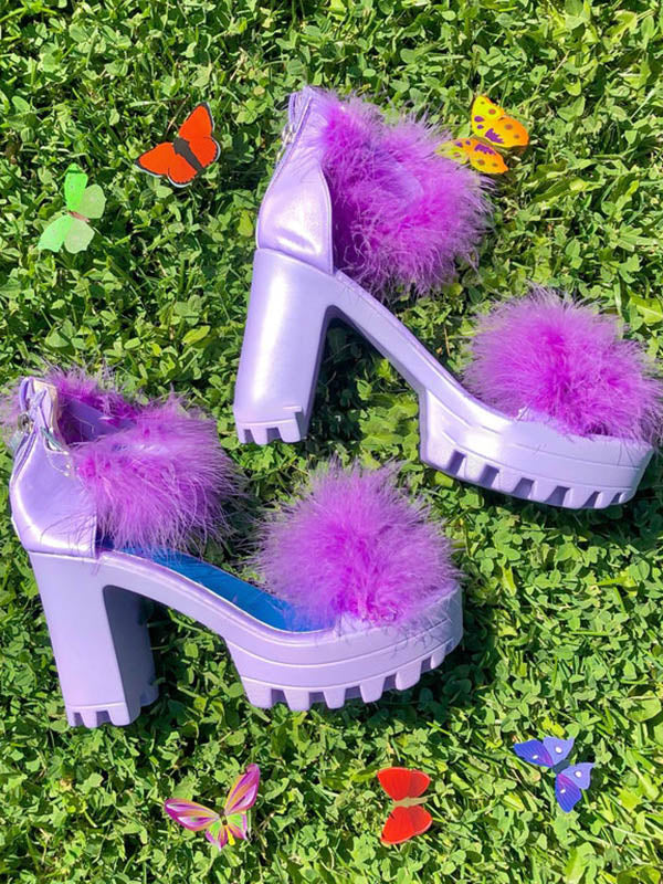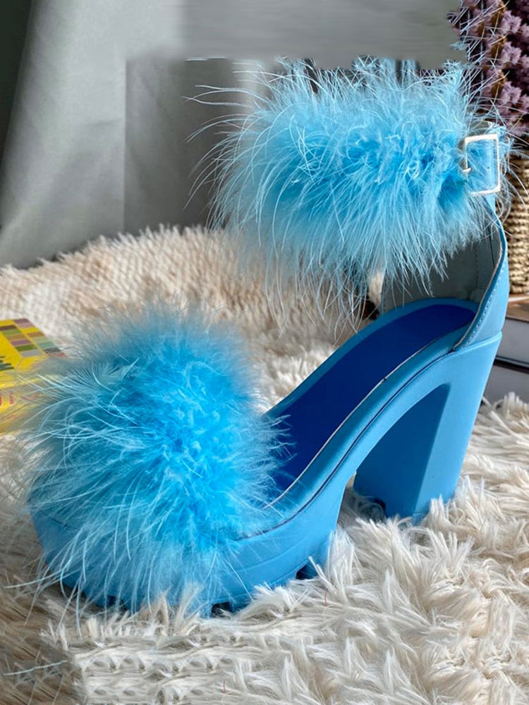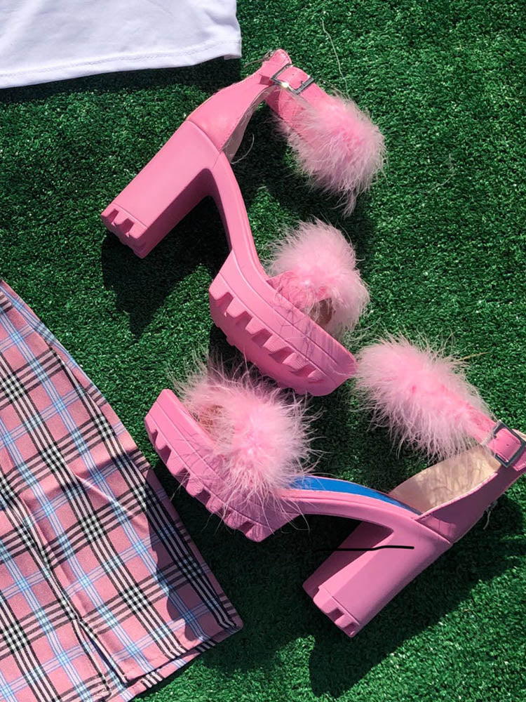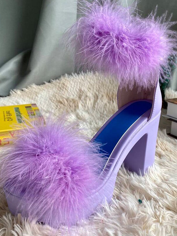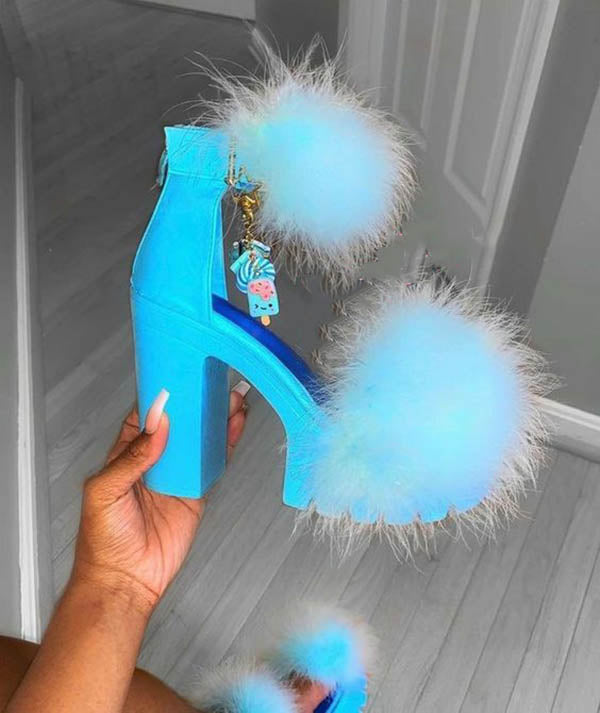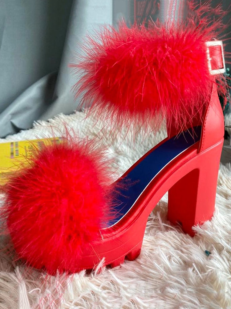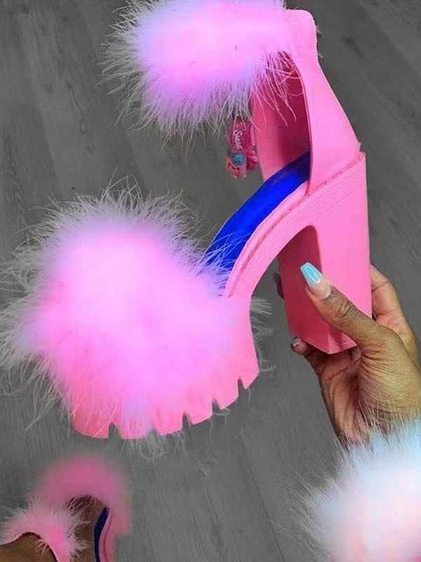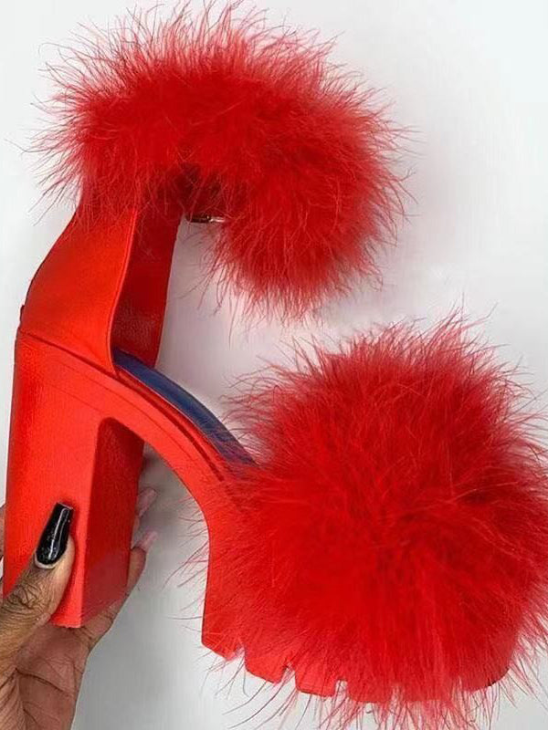Sandale mit pelzigem Blockabsatz