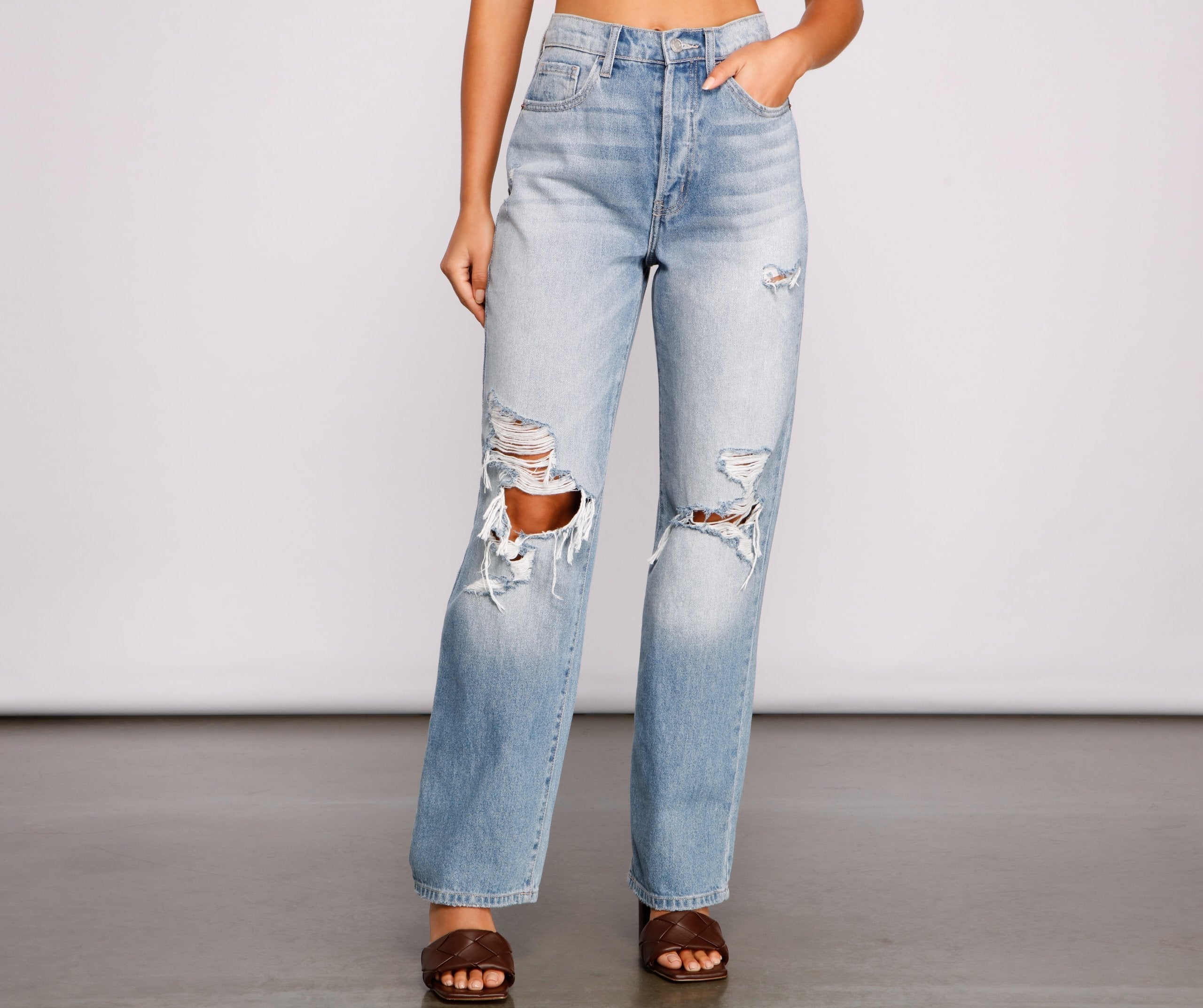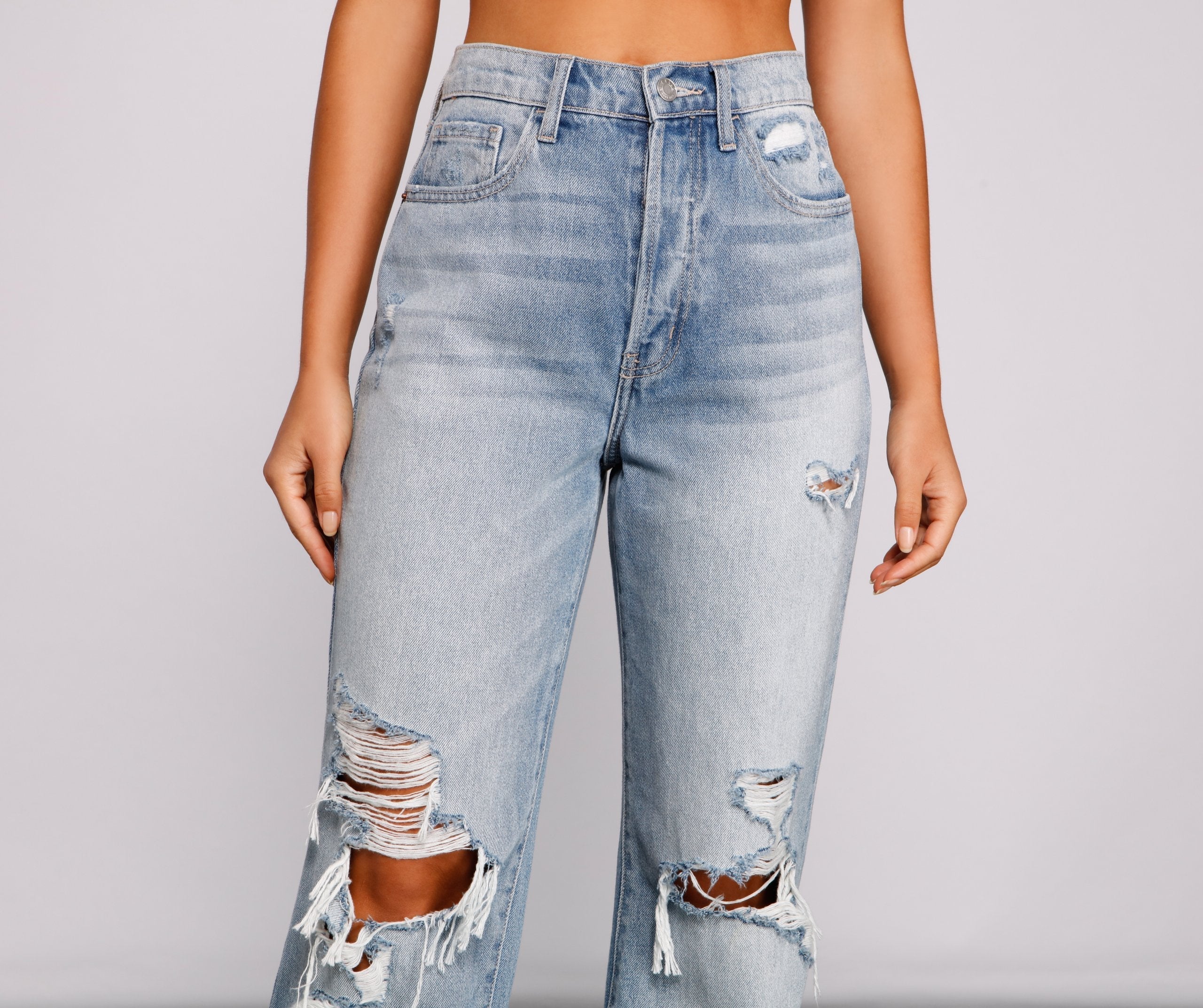 Verleihen Sie Ihrer Jeans mit trendigen Destroyed-Details einen coolen Touch! Diese Boyfriendjeans hat einen hohen Bund, Distressed-Details an den Knien und einen entspannten Boyfriend-Schnitt. Der mittel gewaschene Denim-Stoff bietet minimalen Stretch. Vervollständigen Sie den Look mit einem schicken Korsett-Top .