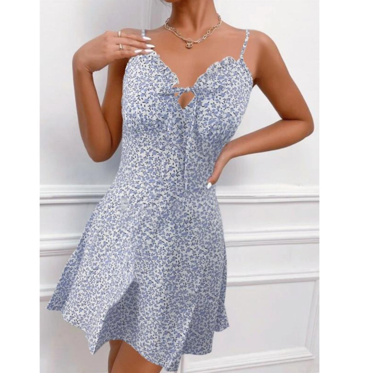 Design: Unregelmäßiger Saum. Rüschenbesatz. Verdeckter Reißverschluss auf der Rückseite. Verstellbares Bindebanddetail