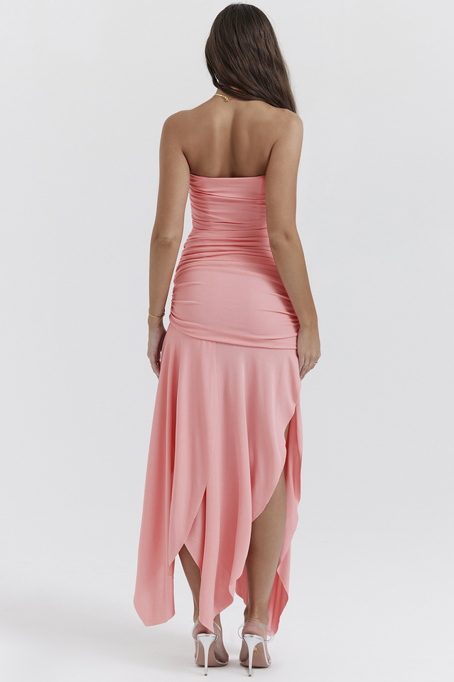 Unser Kleid „Ivana“ ist wunderschön aus sommerlichem, apricotfarbenem Stretch-Jersey geschnitten und hat einen trägerlosen Ausschnitt, der im gesamten Oberteil bis unter die Hüfte sanft gerafft ist, um eine schmeichelhafte Silhouette zu erzielen, und verfügt über unsere unglaublichen Korsettstäbchen, um die Taille zu betonen.