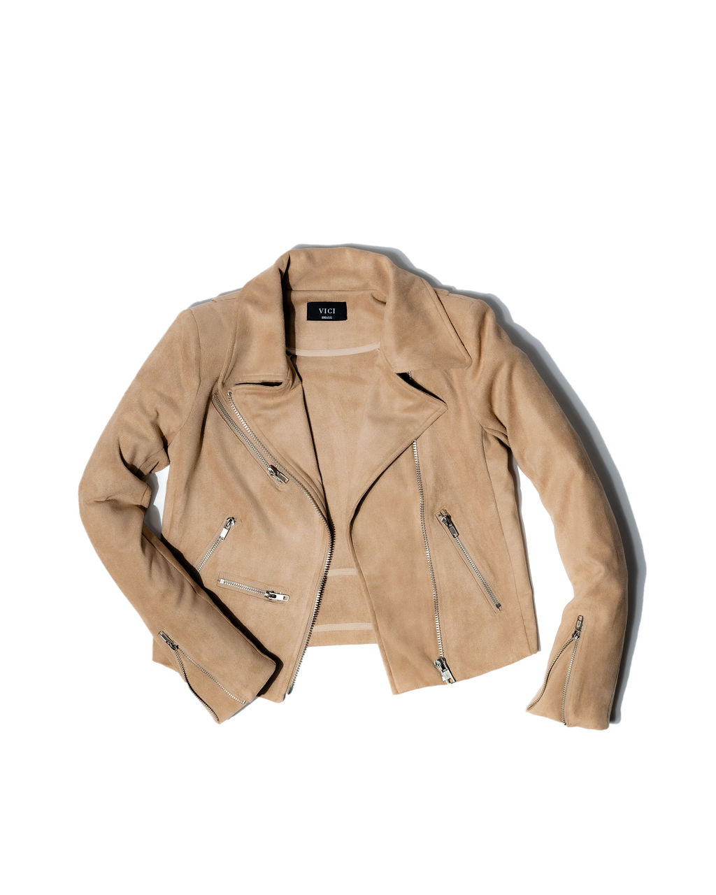 //InsStreet Exklusiv// Bestseller// Die Market Jacket aus sandfarbenem Wildlederimitat hat Reißverschlusstaschen vorne. Reißverschluss-Akzente an den Ärmeln sorgen für eine individuelle Passform. Die butterweiche Textur macht die Jacke dehnbar, leicht und bequem für den ganzen Tag. Kombiniert mit dem El Dorado Hut. Perfect Creolen. Go Global Anhängerkette. Stella Umhängetasche mit Reißverschluss. Elise gerippter Henley-Body. McGuire High Rise Distressed Denim. Ritz Wildlederimitat-Spitzabsatz.