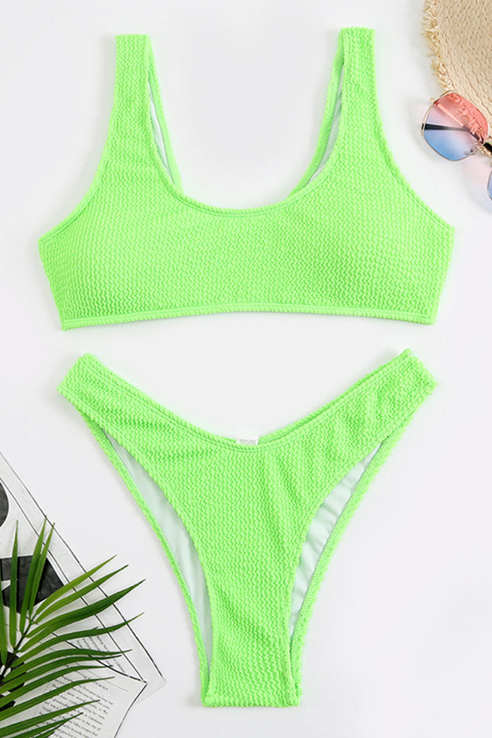 Neongrünes Bikinihöschen mit hohem Beinausschnitt