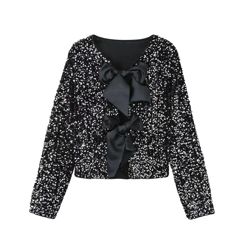 Bringen Sie mit unserer On Point Paillettenbluse Licht ins Zimmer! Funkelnde schwarze und silberne Pailletten schimmern auf dieser Bluse mit lockerer Passform. Gepolsterte Schultern verleihen diesem Oberteil für besondere Anlässe den letzten Schliff. Kombiniert mit der Lenox Pilotenbrille mit schwarzem Rahmen und grauem Farbverlauf. Chloe Mini-Halskette. Initialen-Kartenkette. Schlichter Armreif. Stella Umhänge-Clutch mit Reißverschluss. Kason Distressed High Rise Denim. Und Vanderpump verzierte Flats aus Wildlederimitat.