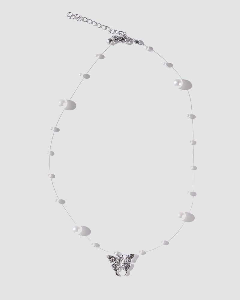 Details : Halskette mit Schmetterlings- und Perlendesign