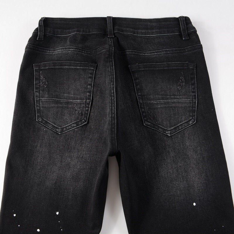 Wir präsentieren unsere schwarzen Jeans mit Farbspritzer-Print aus der Herbstkollektion 2023 – der ultimative Grunge-Style!
