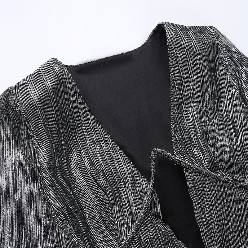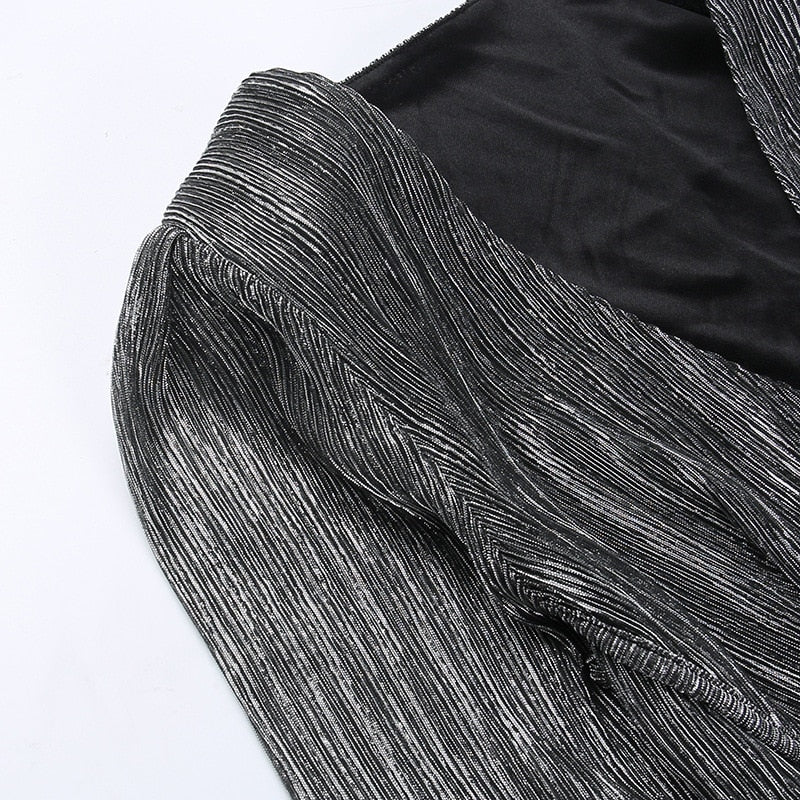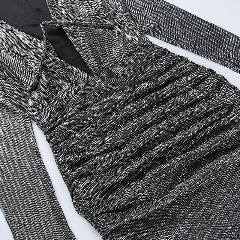 Unser luxuriöses Phlia-Kleid ist aus sexy Plisseestoff gefertigt und hat einen tiefen V-Ausschnitt, ein Bügel-Oberteil, lange Ärmel und einen asymmetrischen Saum. Für einen unvergesslichen Look kombinieren Sie es mit Absatzsandalen und einer Mini-Clutch.
