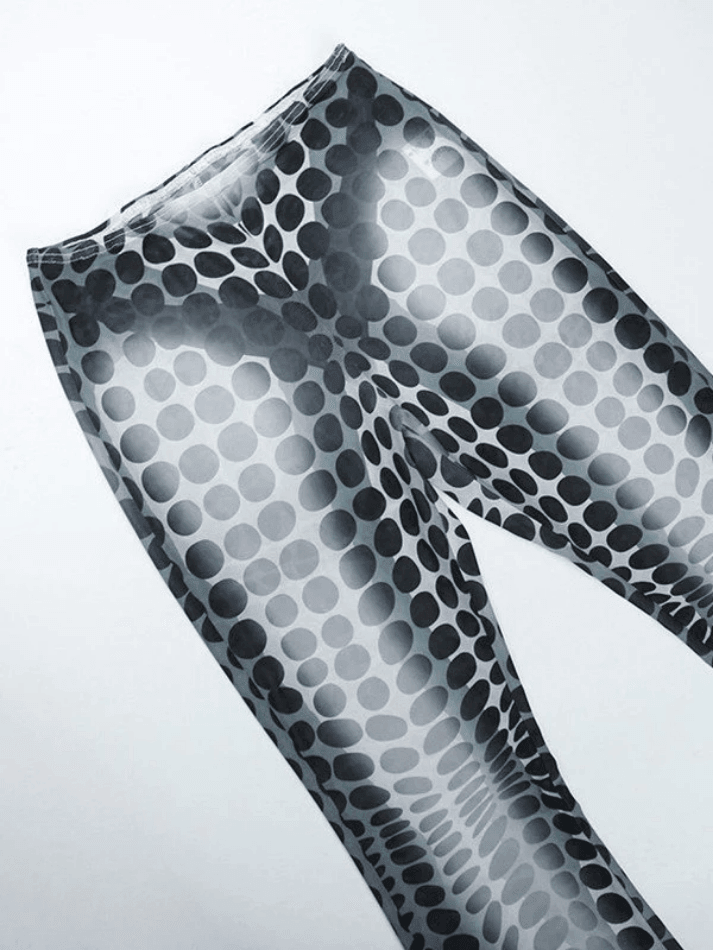 Beschreibung: Zeigen Sie Ihre verspielte Seite mit dieser verspielten Schlaghose mit gepunktetem Netzstoff. Aus halbtransparentem, dehnbarem Stoff gefertigt, ist diese Hose bequem und stylisch zugleich. Der verstellbare Bund sorgt für perfekten Sitz, während der verblassende Polka-Dot-Print Ihrem Look einen Hauch von Verspieltheit verleiht. Perfekt für einen lässigen Tag oder eine durchtanzte Nacht. Diese Hose ist ein Must-have für jede modebewusste Frau der Generation Z. Heben Sie sich von der Masse ab und setzen Sie ein Statement mit dieser trendigen Hose. Machen Sie sich bereit, alle Blicke auf sich zu ziehen und fühlen Sie sich selbstbewusst in Ihrem einzigartigen Stil. Werten Sie Ihre Garderobe mit dieser vielseitigen und auffälligen Hose auf.