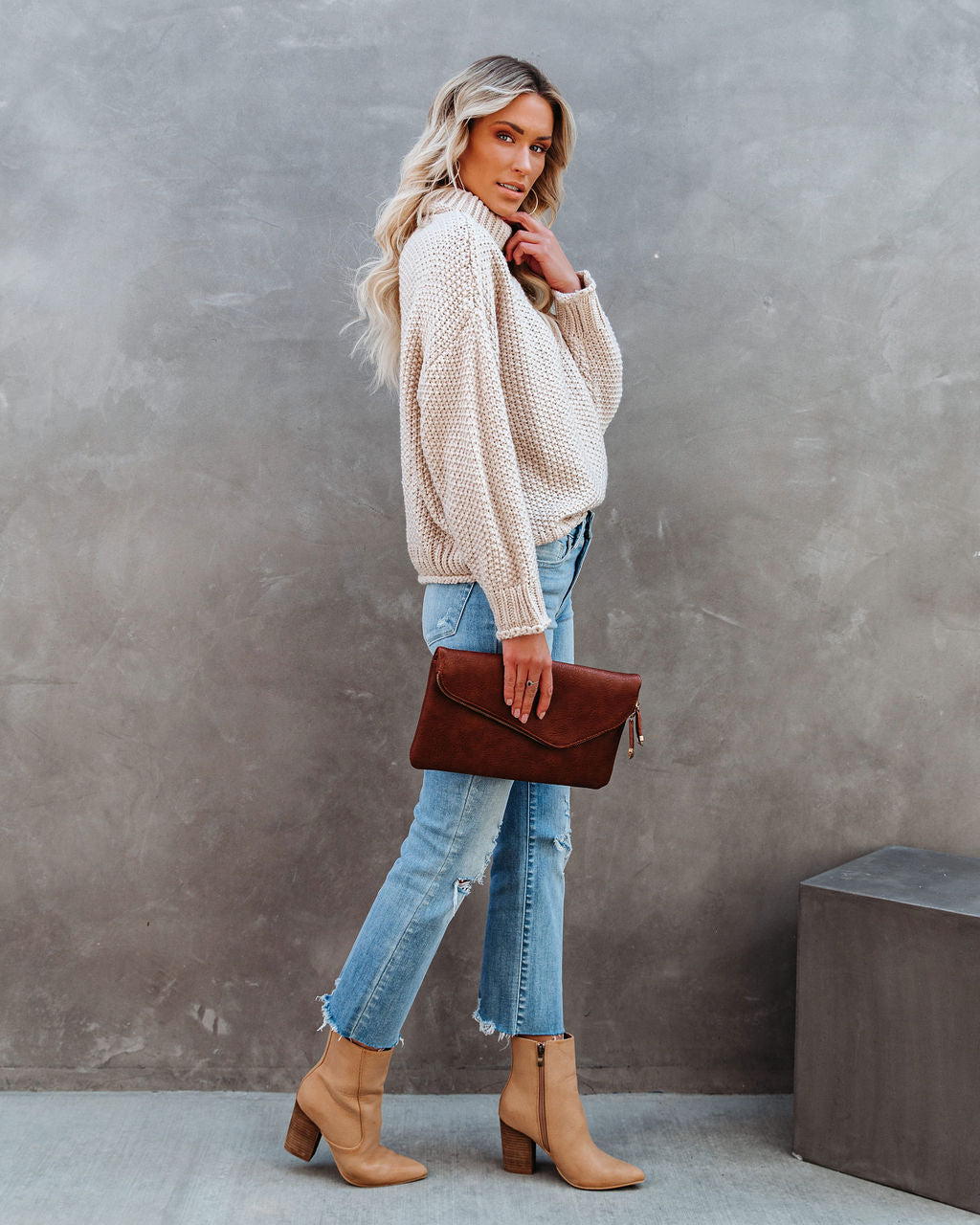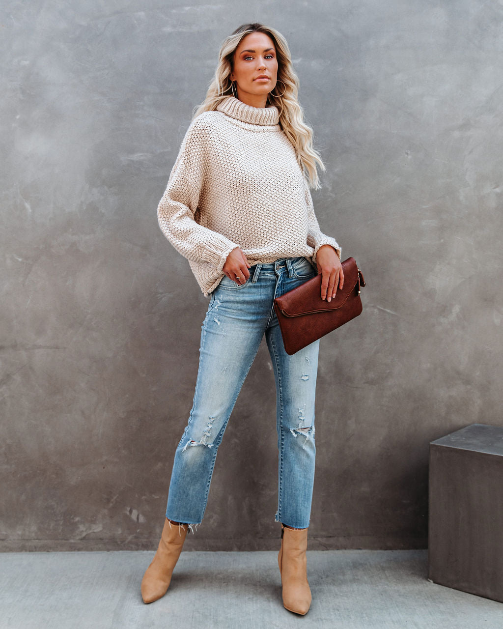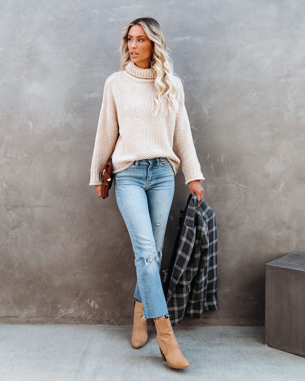 Wir lieben grobe Strickwaren, und der Quay Rollkragenpullover ist genau das! Dieser beige Strickpullover hat einen Rollkragen, lange Ärmel und Rollsaum. Vorne in Jeans stecken für einen lässigen Herbst-Look!