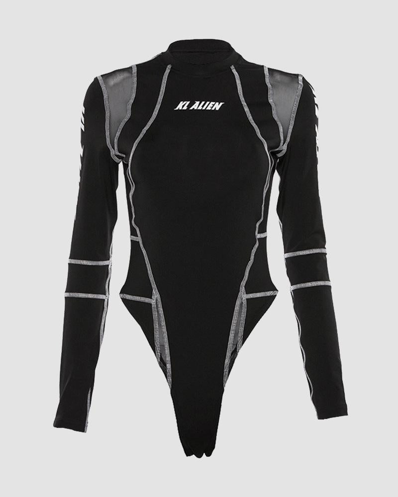 Details : Langärmliger Body mit Buchstabendesign auf der Vorderseite