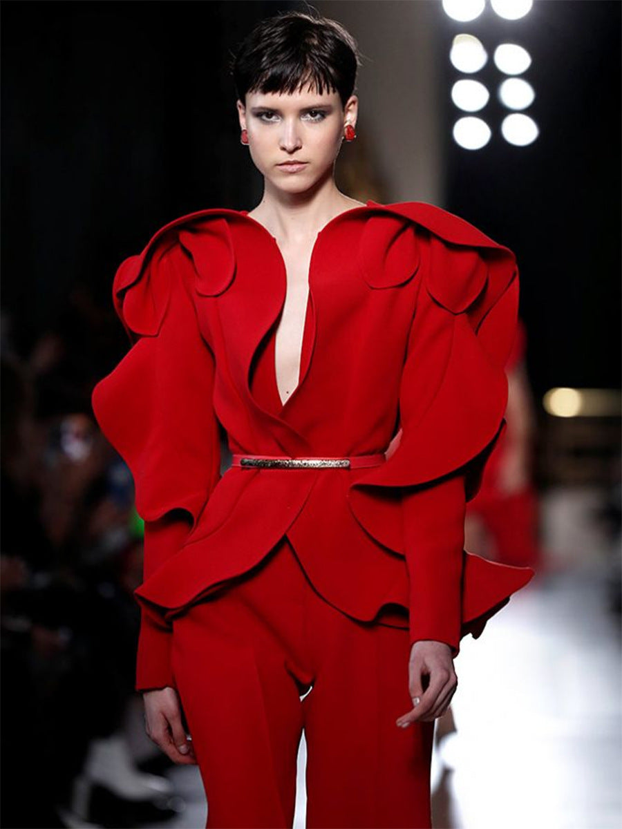 Verleihen Sie Ihrer Garderobe mit der ROTEN RÜSCHENJACKE einen Hauch von Spaß. Dieses verspielte Stück besticht durch leuchtend rote Rüschen für einen einzigartigen und originellen Look.