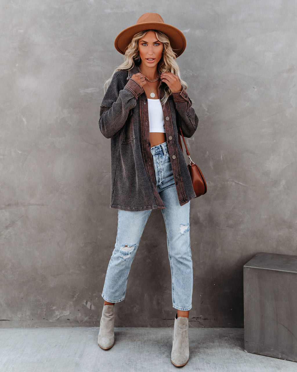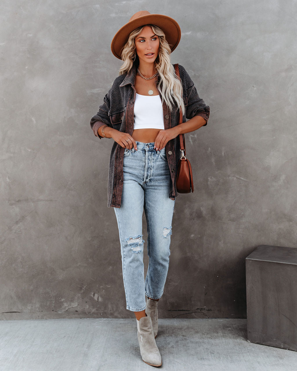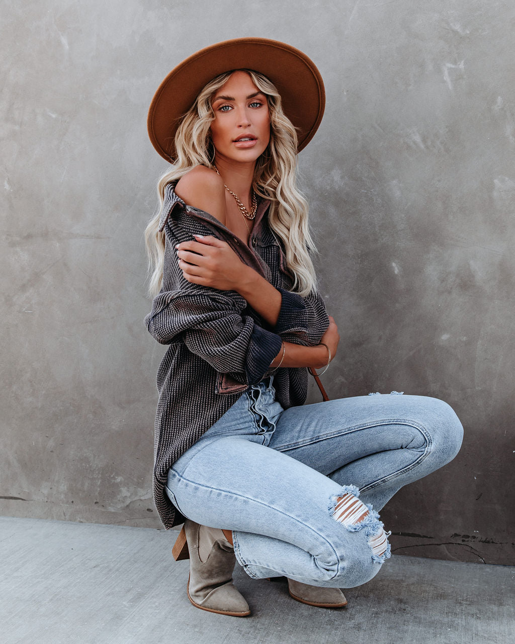 Keine gewöhnliche Shacket! Unsere Rigo Cotton Button Down Shacket kommt in einem staubigen marineblauen Thermo-Stil. Mit Brusttaschen und Knopfverschluss vorne. Tragen Sie diese leichte Shacket über Jeans und einem Tanktop. Kombiniert mit dem El Dorado Hut. Perfekte Creolen. Chloe Mini-Halskette. Mica Chain Choker. Und Mosaic Coin Halskette. Schlichter Armreif. Central Park Crossbody Bag. Cassie Tank Brami. Kason Distressed High Rise Denim. Und Uptown Faux Wildleder Heeled Bootie.