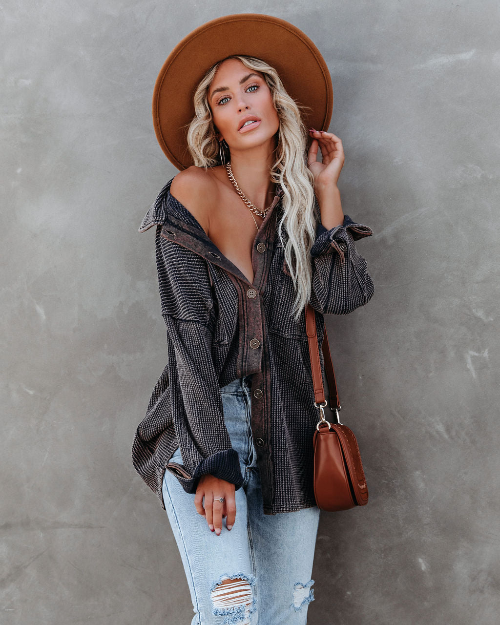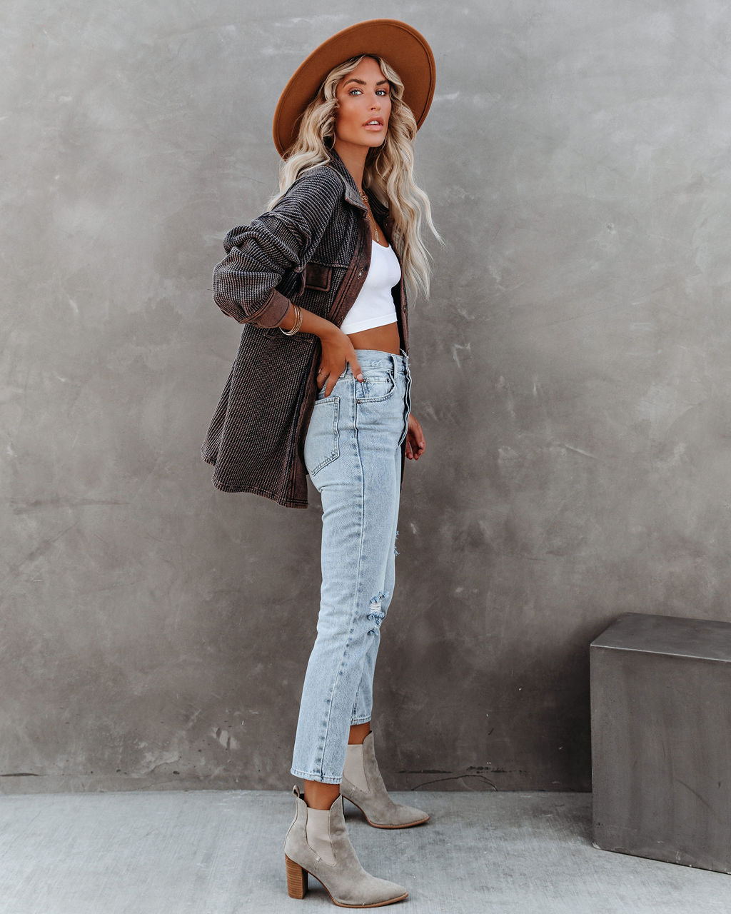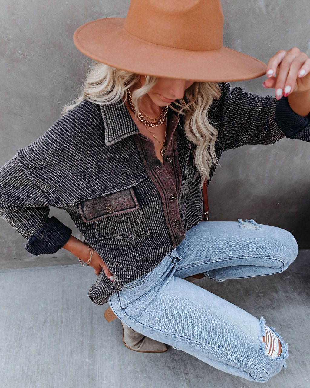 Keine gewöhnliche Shacket! Unsere Rigo Cotton Button Down Shacket kommt in einem staubigen marineblauen Thermo-Stil. Mit Brusttaschen und Knopfverschluss vorne. Tragen Sie diese leichte Shacket über Jeans und einem Tanktop. Kombiniert mit dem El Dorado Hut. Perfekte Creolen. Chloe Mini-Halskette. Mica Chain Choker. Und Mosaic Coin Halskette. Schlichter Armreif. Central Park Crossbody Bag. Cassie Tank Brami. Kason Distressed High Rise Denim. Und Uptown Faux Wildleder Heeled Bootie.