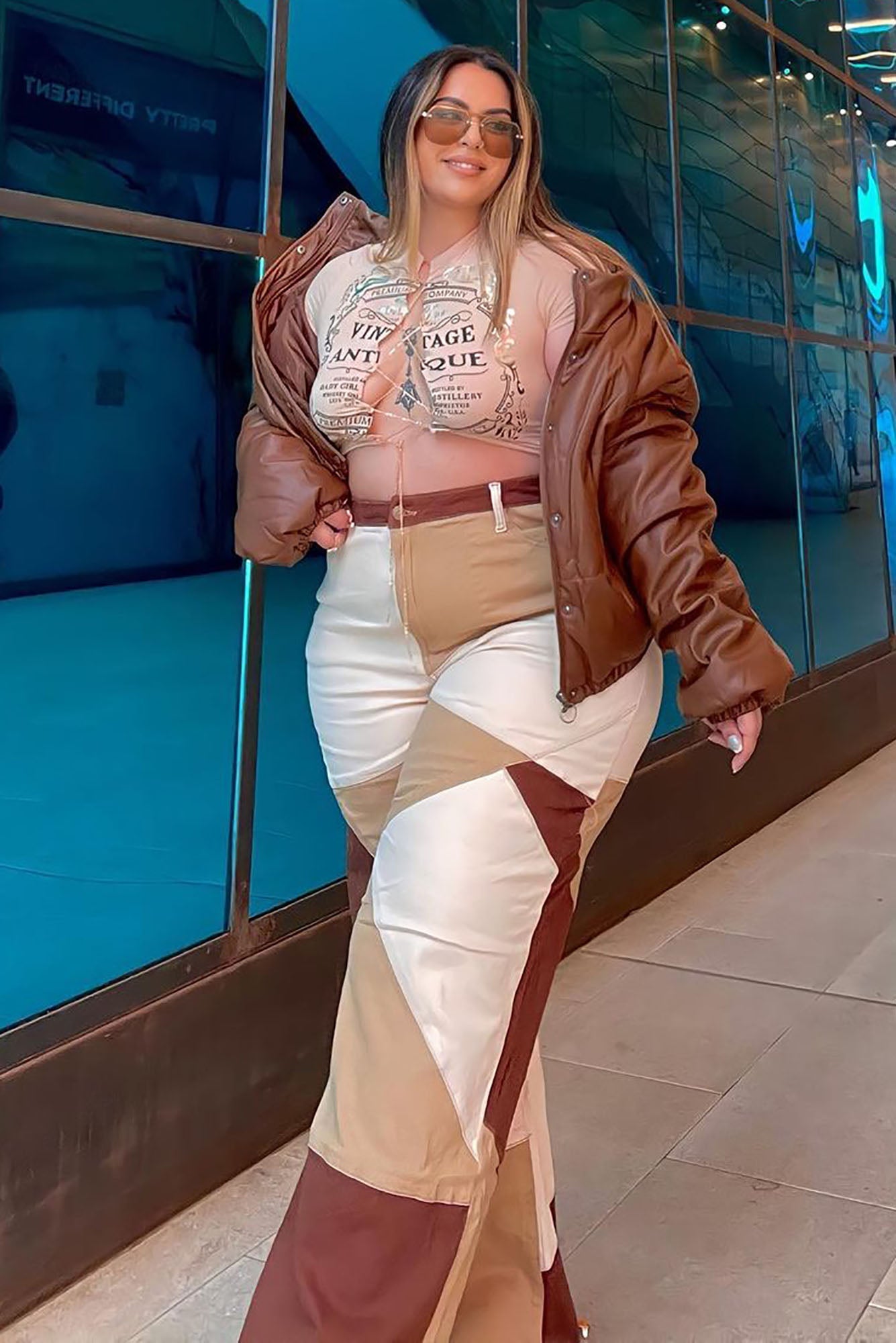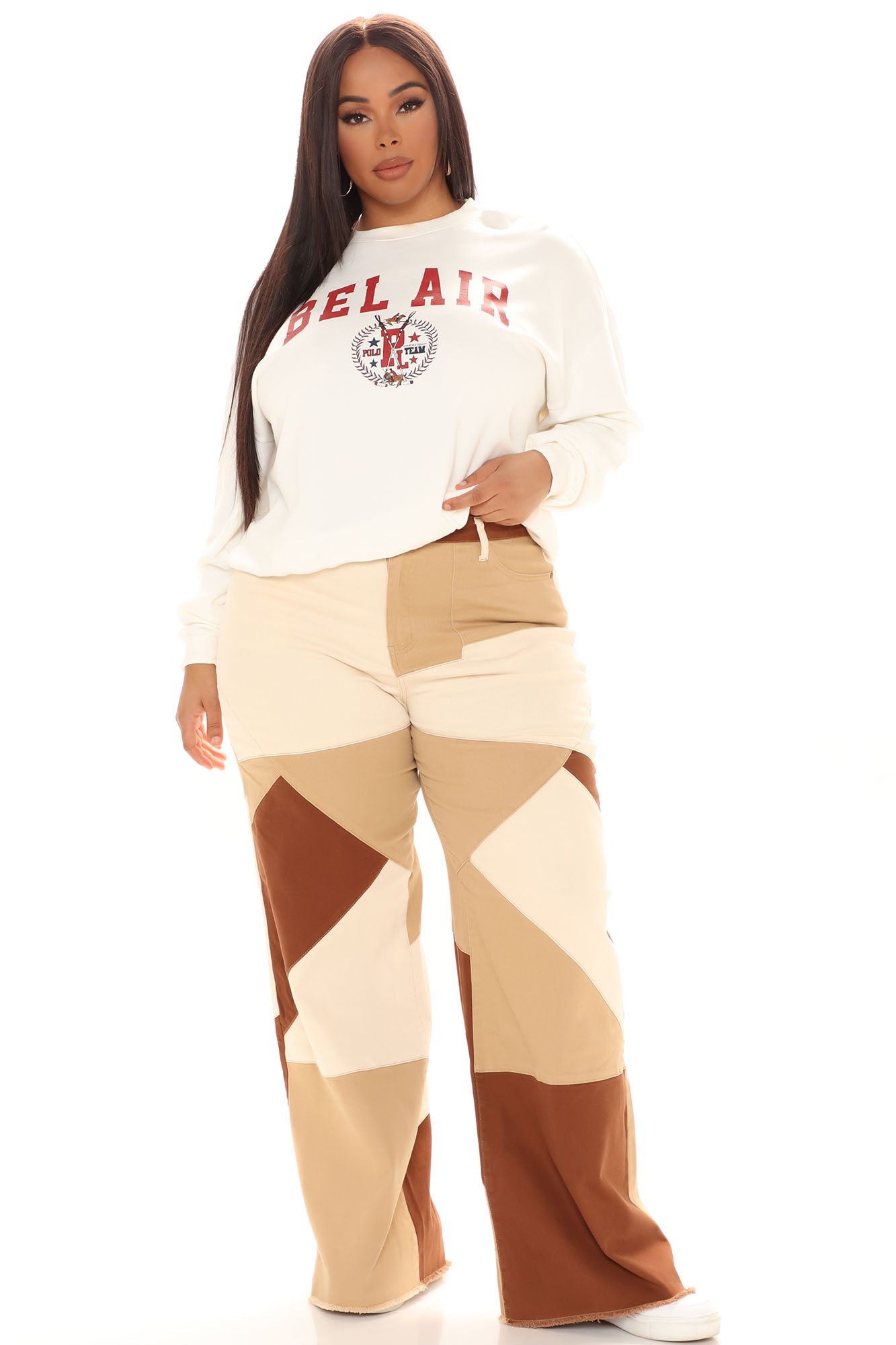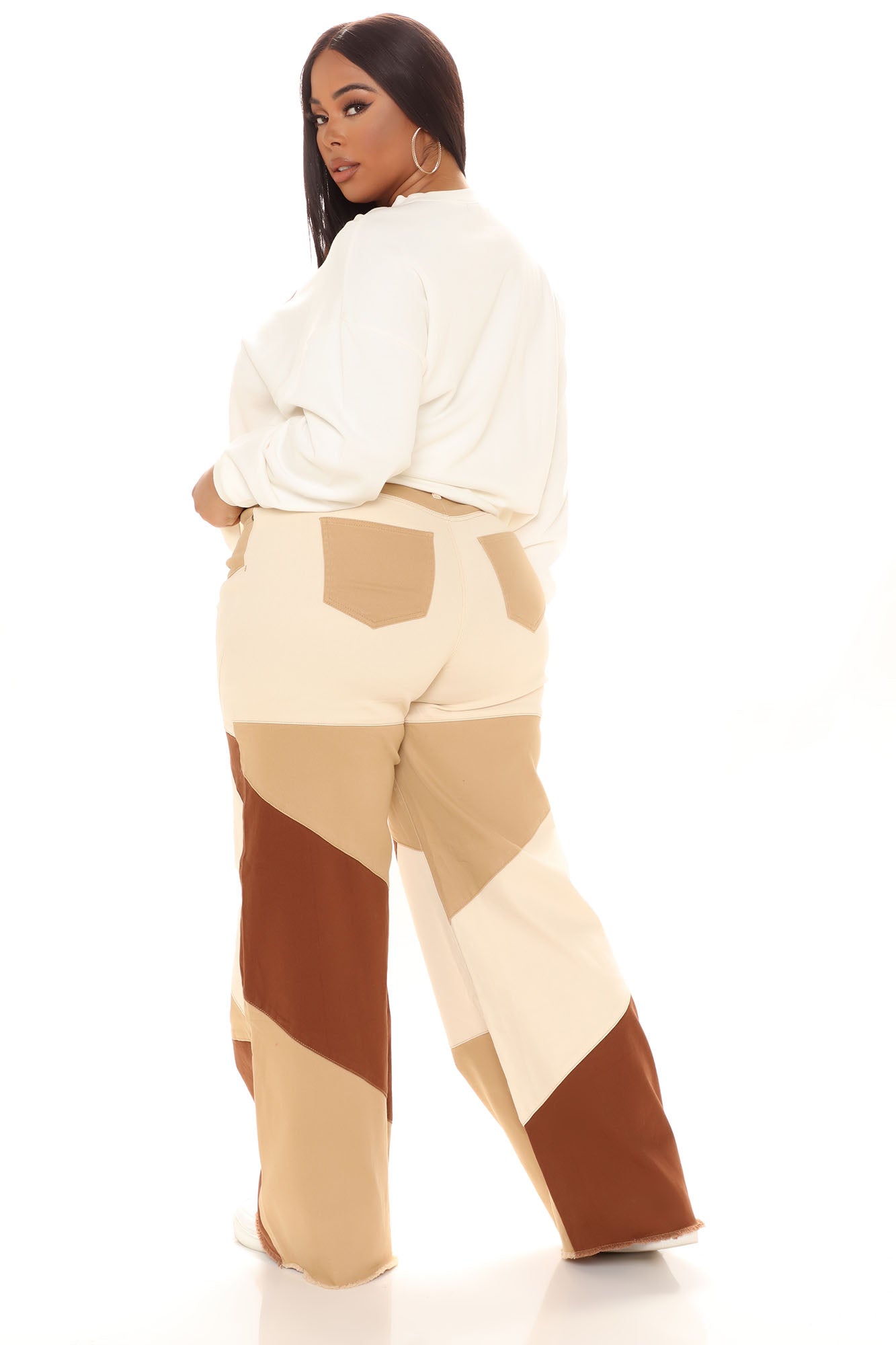 Seen The World Patchwork Wide Leg Jeans - Brown/combo Ins Street