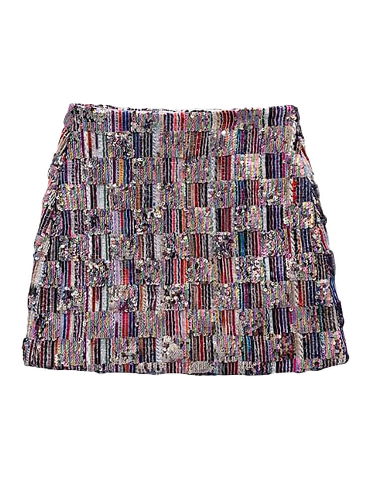 Merkmale: Pailletten. Gestreift. Kariert. Patchwork. Hohe Taille. Figurbetont. Minirock.