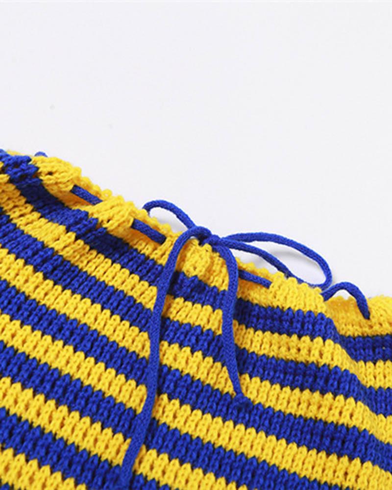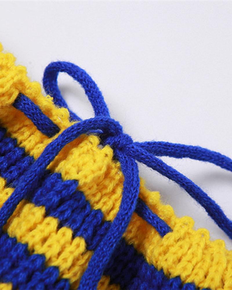 Details : Häkelrock-Set. Wird mit einem Camisole-Oberteil mit Sternenmuster und einem Rock mit Streifenmuster geliefert.