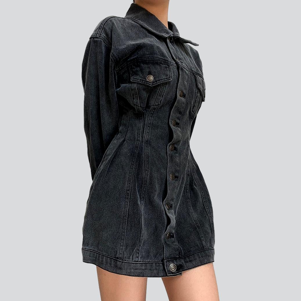Dieses einreihige Mini-Jeanskleid ist der ultimative Ausdruck rockiger Eleganz. Es ist vielseitig, schick und unbestreitbar bezaubernd und damit die perfekte Ergänzung für Ihre Sommergarderobe. Bereit für die Stil-Renaissance? Holen Sie sich noch heute Ihr Mini-Jeanskleid!