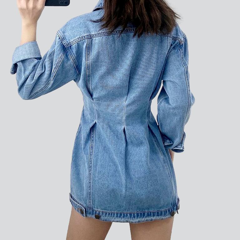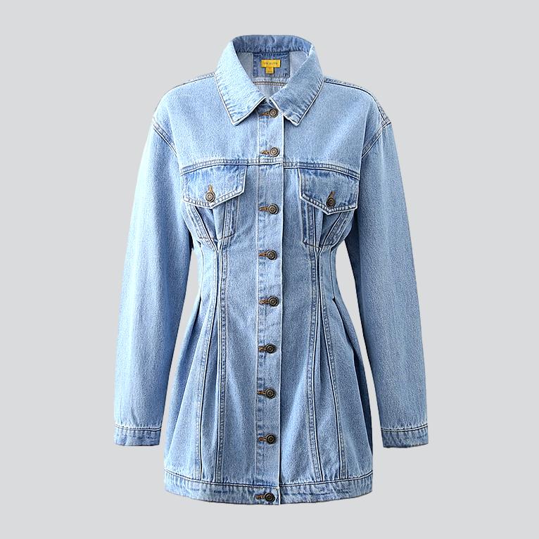 Wir präsentieren das einreihige Mini-Jeanskleid aus der Frühjahr-Sommer-Kollektion 2023 – ein Jeanstraum für das neue Zeitalter!