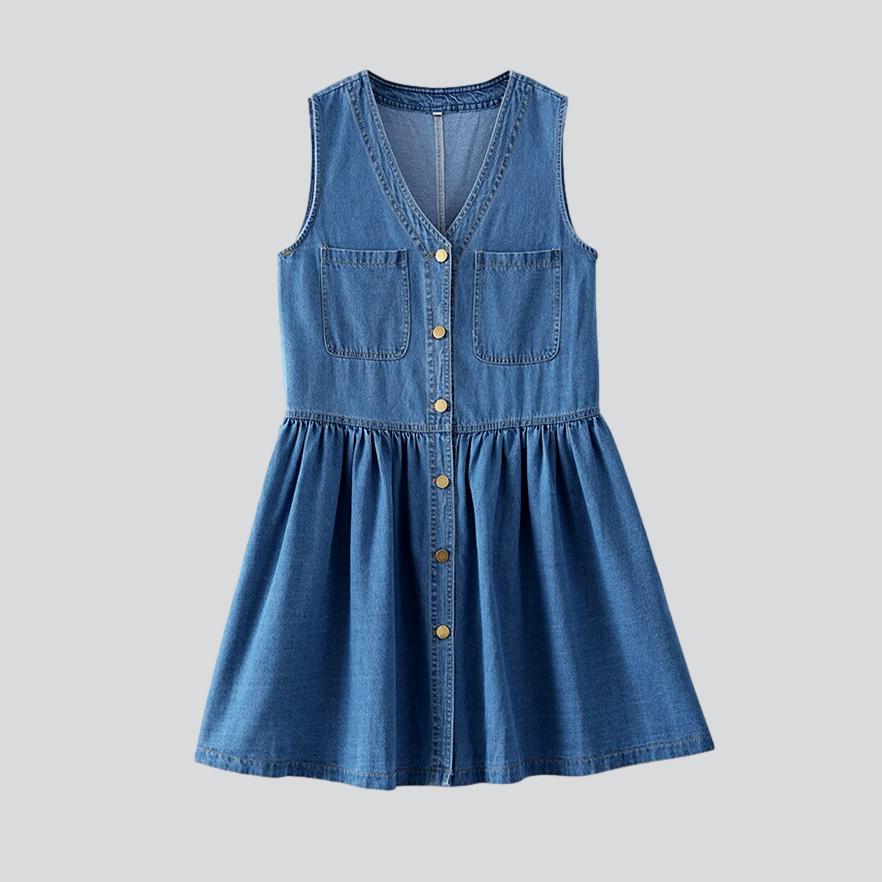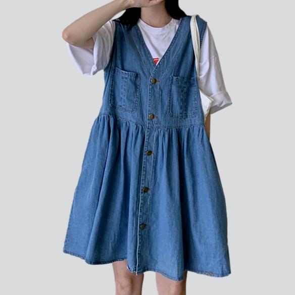 Dieses Kleid wurde sorgfältig für Modebegeisterte entworfen, die ihren inneren Trend des 20. Jahrhunderts zum Ausdruck bringen möchten. Die leichte Waschung, die Mini-Silhouette und der Knopfverschluss ergeben einen Look, der garantiert für Aufsehen sorgt. Vom Picknick im Park bis zur Dachterrassenparty – dieses Kleid ist der perfekte Begleiter für jeden Anlass.