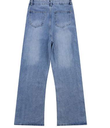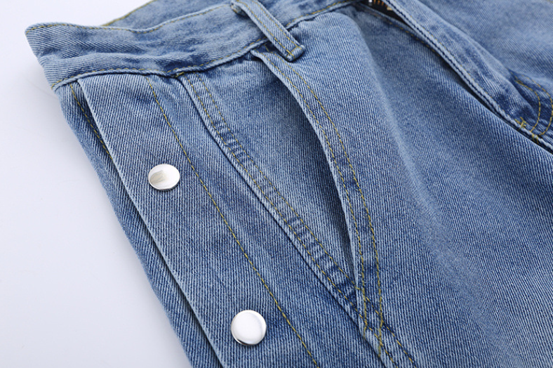 Jeans mit Druckknöpfen – Mittelblaue Waschung