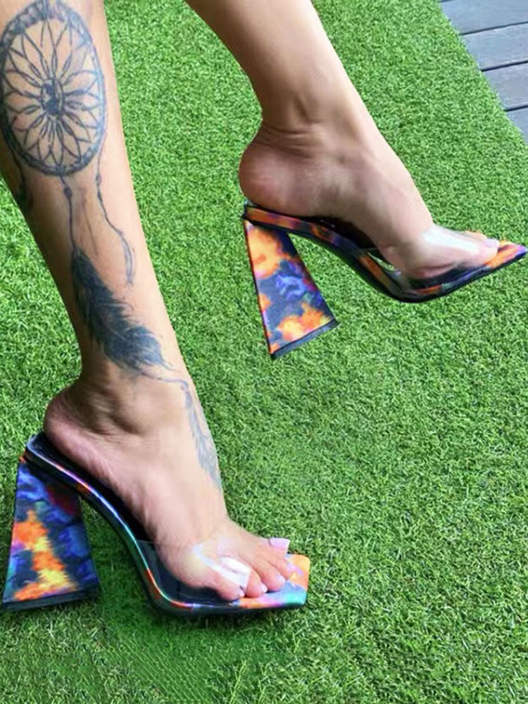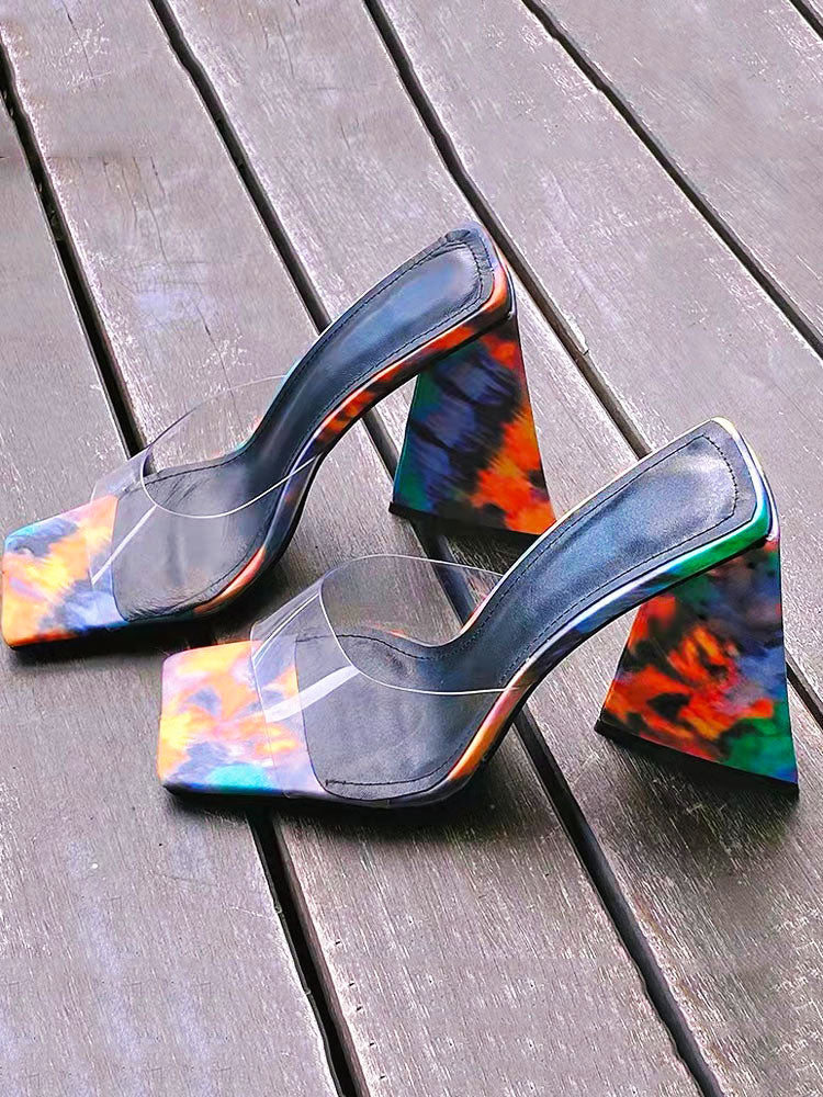 Sandalen mit eckiger Zehenpartie und dreieckigem Absatz