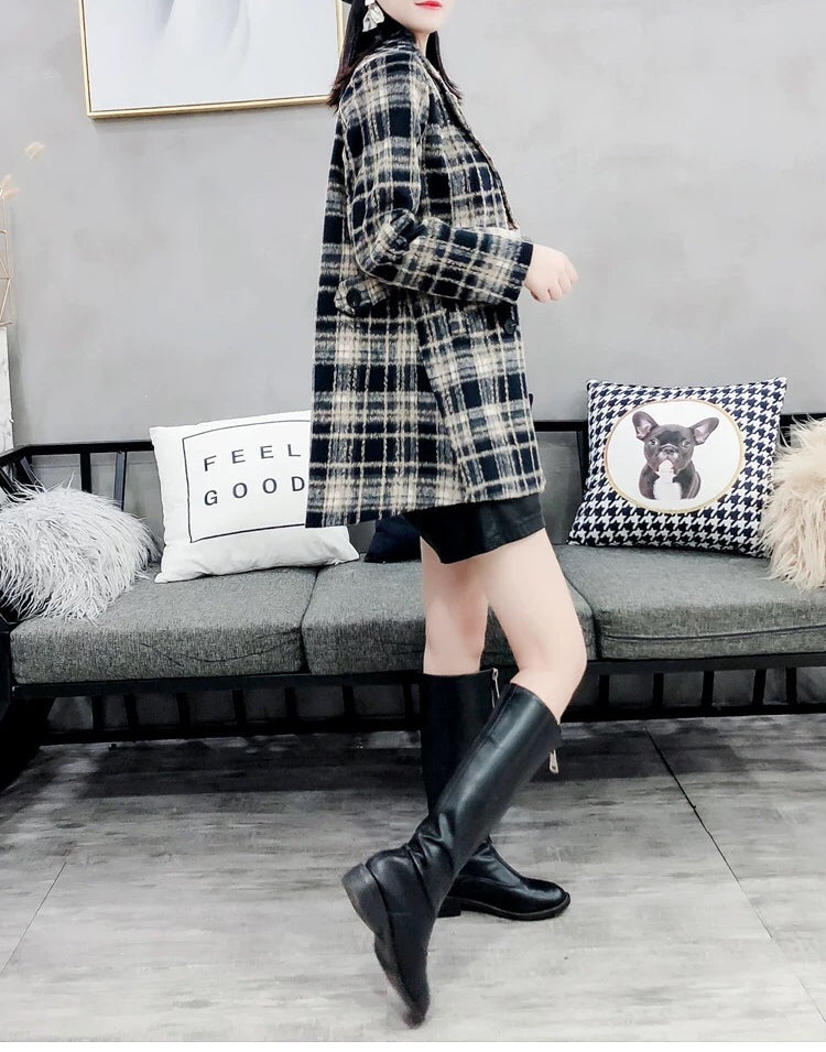 //Bestseller// Neue Farbe// Unser Stan Pocketed Plaid Coat bringt Schwung in Ihre Oberbekleidungskollektion! Dunkelblau, Anthrazit und Beige prägen diesen Mantel. Mit Knopfverschluss vorne und Reverskragen. Kombiniert mit Mercury Hoops, Stella Crossbody Envelope Zip Clutch, Kannon Rollkragenpulloverkleid und Saint Slouch Boot.