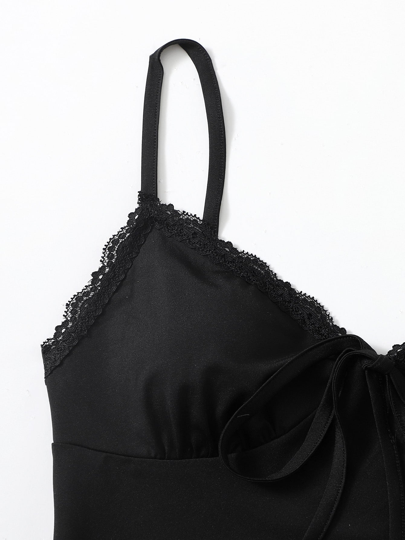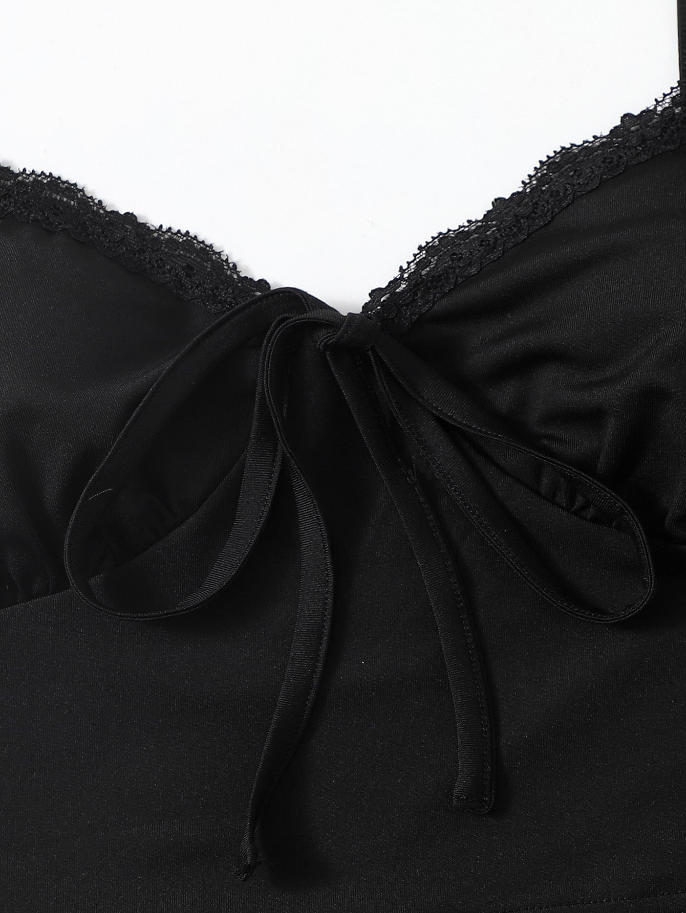 Lace Trim Tie Front Cami Crop Top Sai Feel
