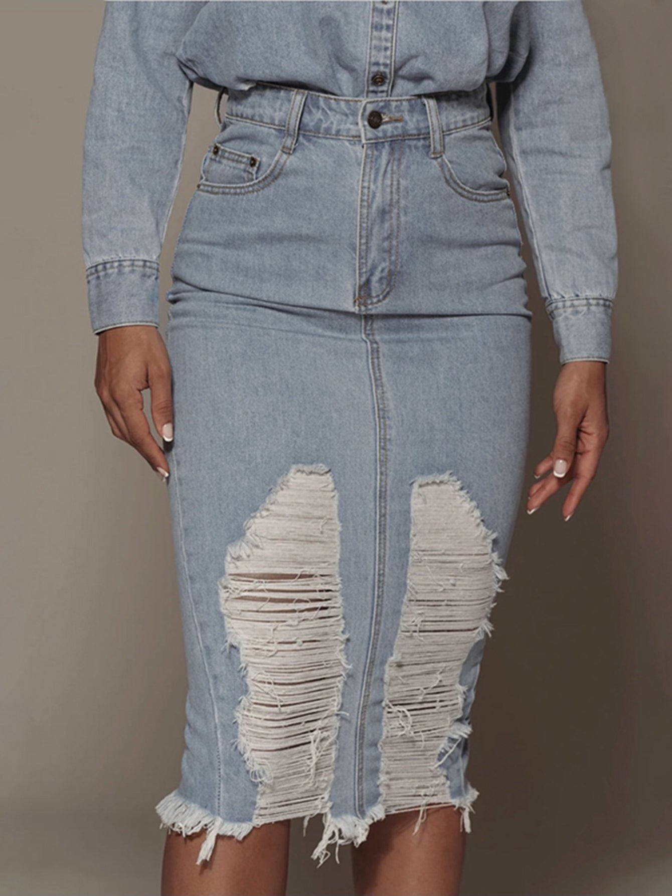 High Waist Slit Hem Pencil Denim Skirt Sai Feel