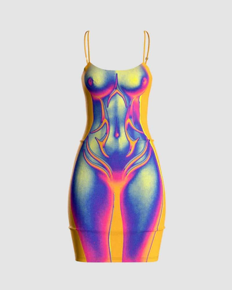 Details: Bodycon dress with anaglyph heatmap graphical print