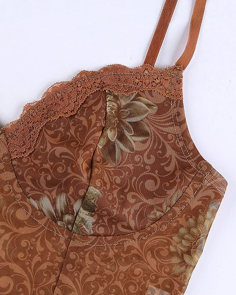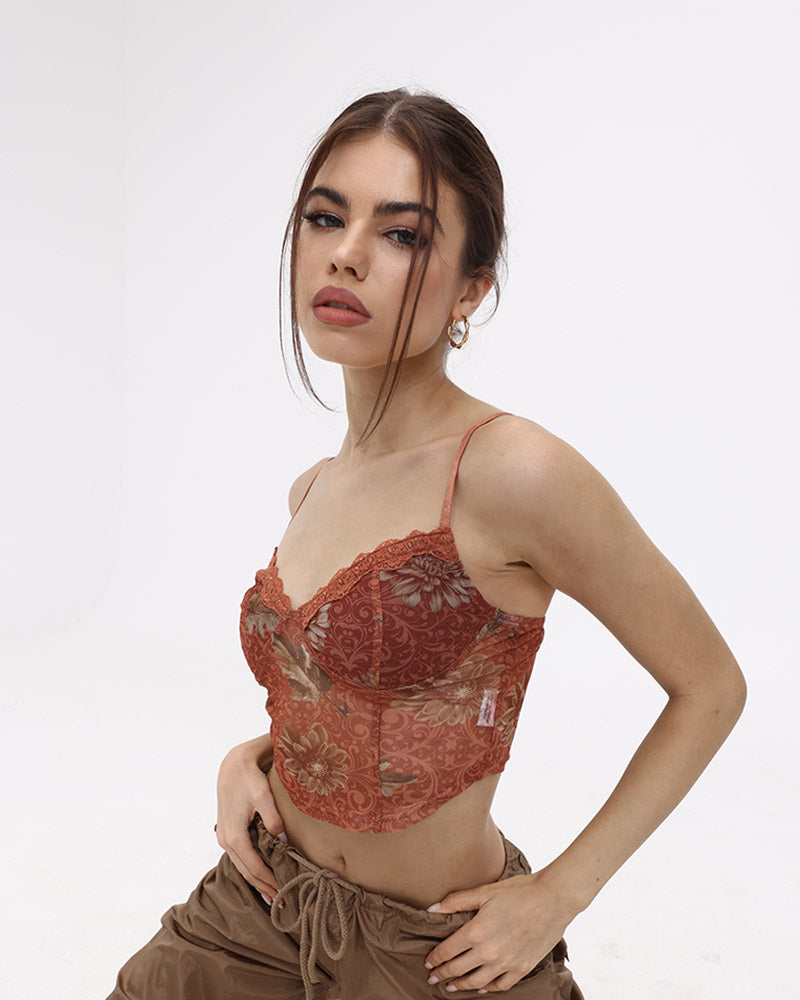 Details: Lacecrop top with floral prints