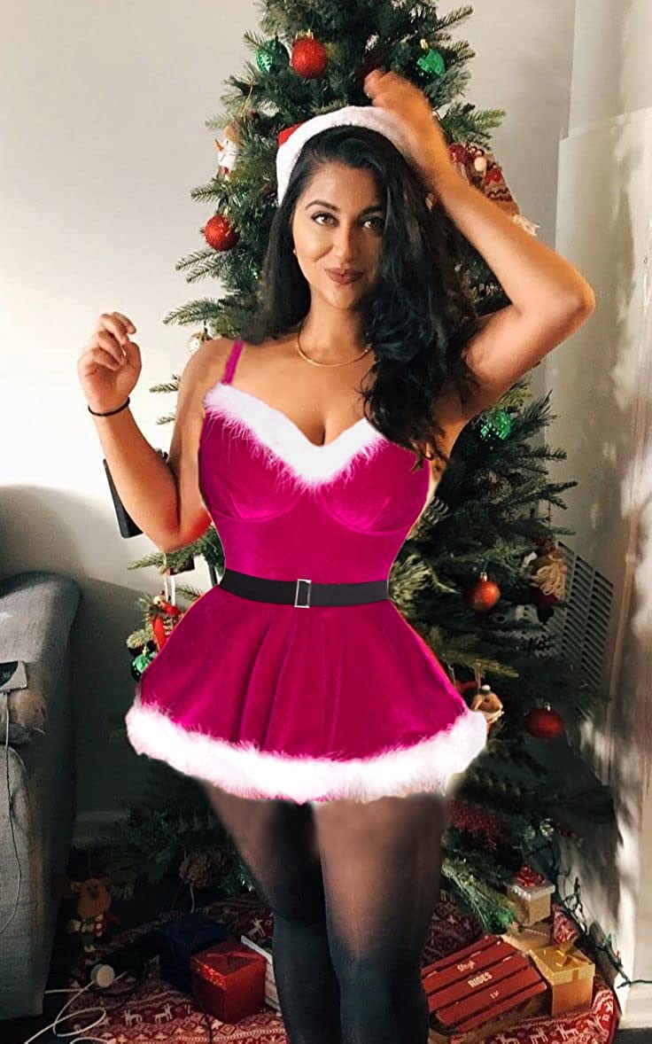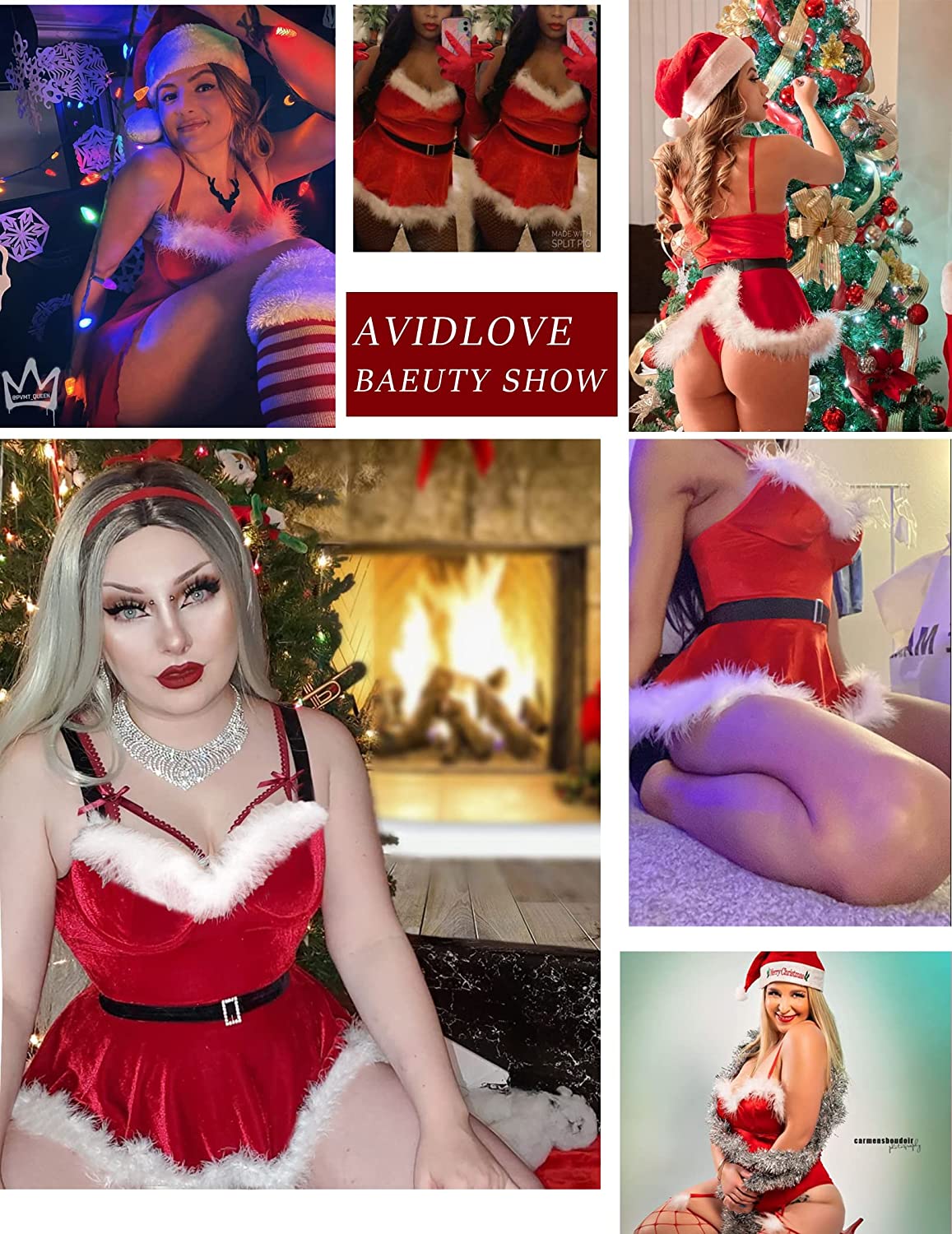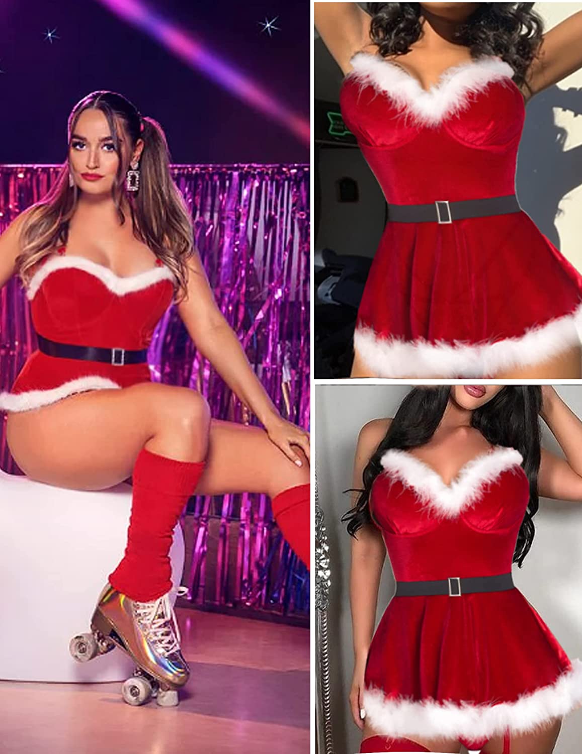 ?Featured: This Christmas lingerie dress is designed with a furry fur trimmed V-neck to show off your hot chest curves. super cute christmas lingerie dress with black pull through adjustable belts. you'll look sexy and cute in it!