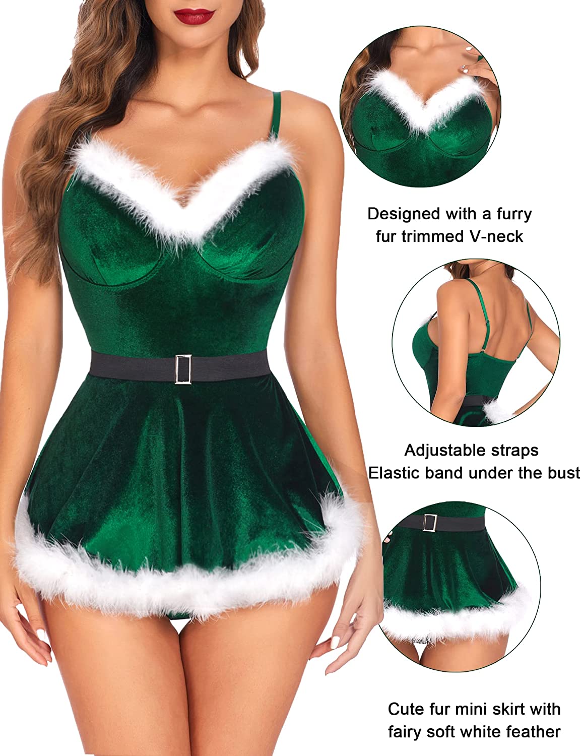 ?Material: This Christmas lingerie is made of soft and light velvet material. it will not never make you feel Itchy. Breathable and skin-friendly fabric will make you feel more comfortable when wearing on it.