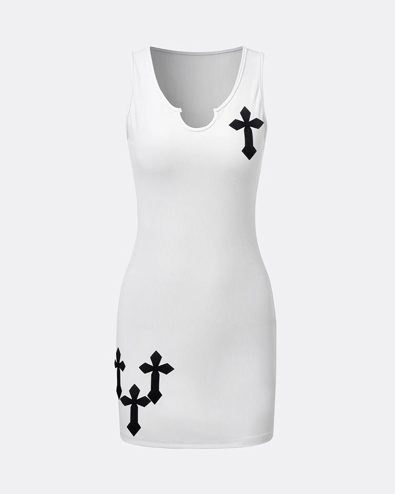 Details: Bodycon dress with cross prints