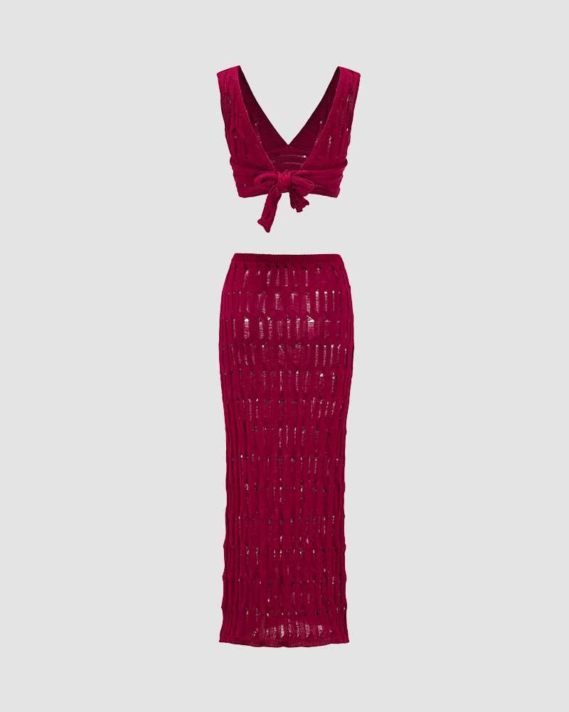 Details: Crochet coord set. coming with V-neck cami top and maxi skirt