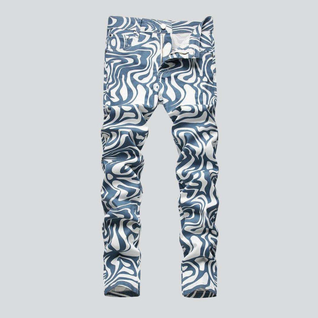 Elevate your laid-back trend with our blue ornament print men's jeans from the 2023 Spring-Summer Collection. These slim mid-waist jeans are the perfect blend of daring street-trend and trendy sophistication. Crafted with a unique damaged pattern and premium quality denim for durability. they come with a zipper & button closure and a hint of stretch for extra comfort.