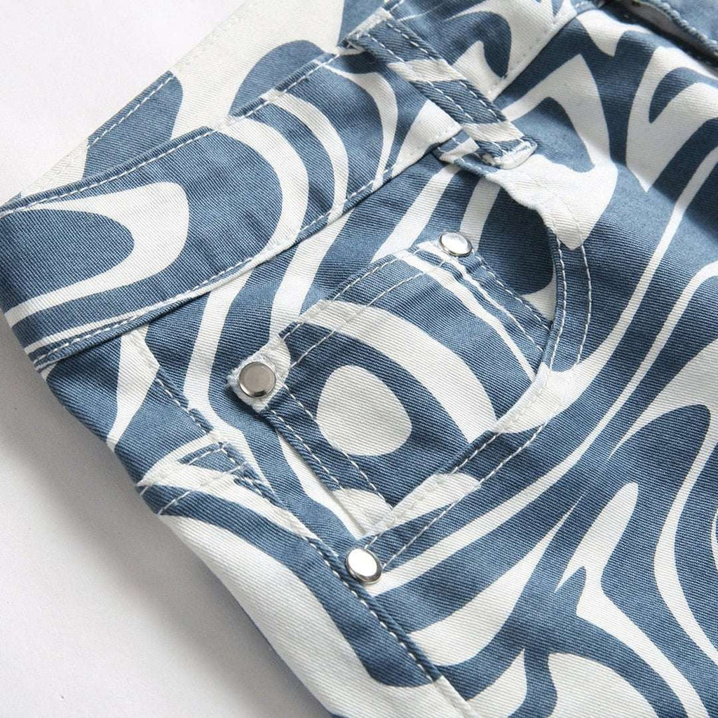 Featuring an eye-catching blue ornament print. these jeans are the epitome of chic. With their city-flair flair and effortless rebellious-inspired look. these jeans are an absolute must-have for any trendsetter. These jeans make an instant statement. whether you're headed to a music festival or just out for a relaxed day.